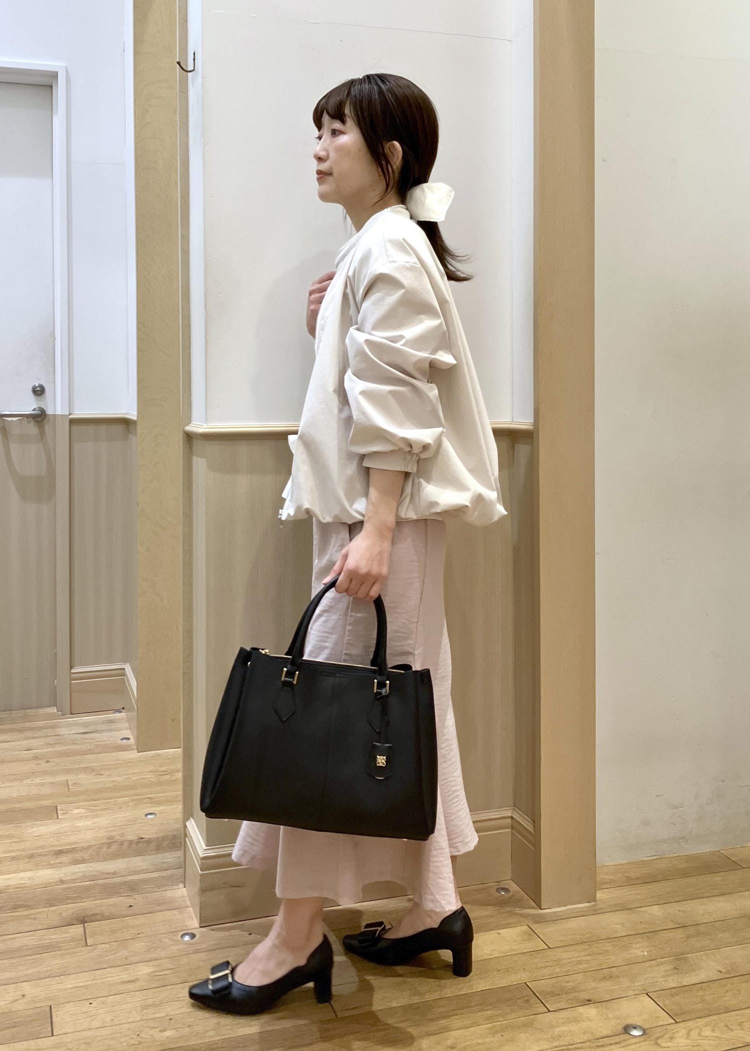 淡いカラーで甘めにまとめてみたのでカッチリを意識してbagはブラックカラーで合わせてます。