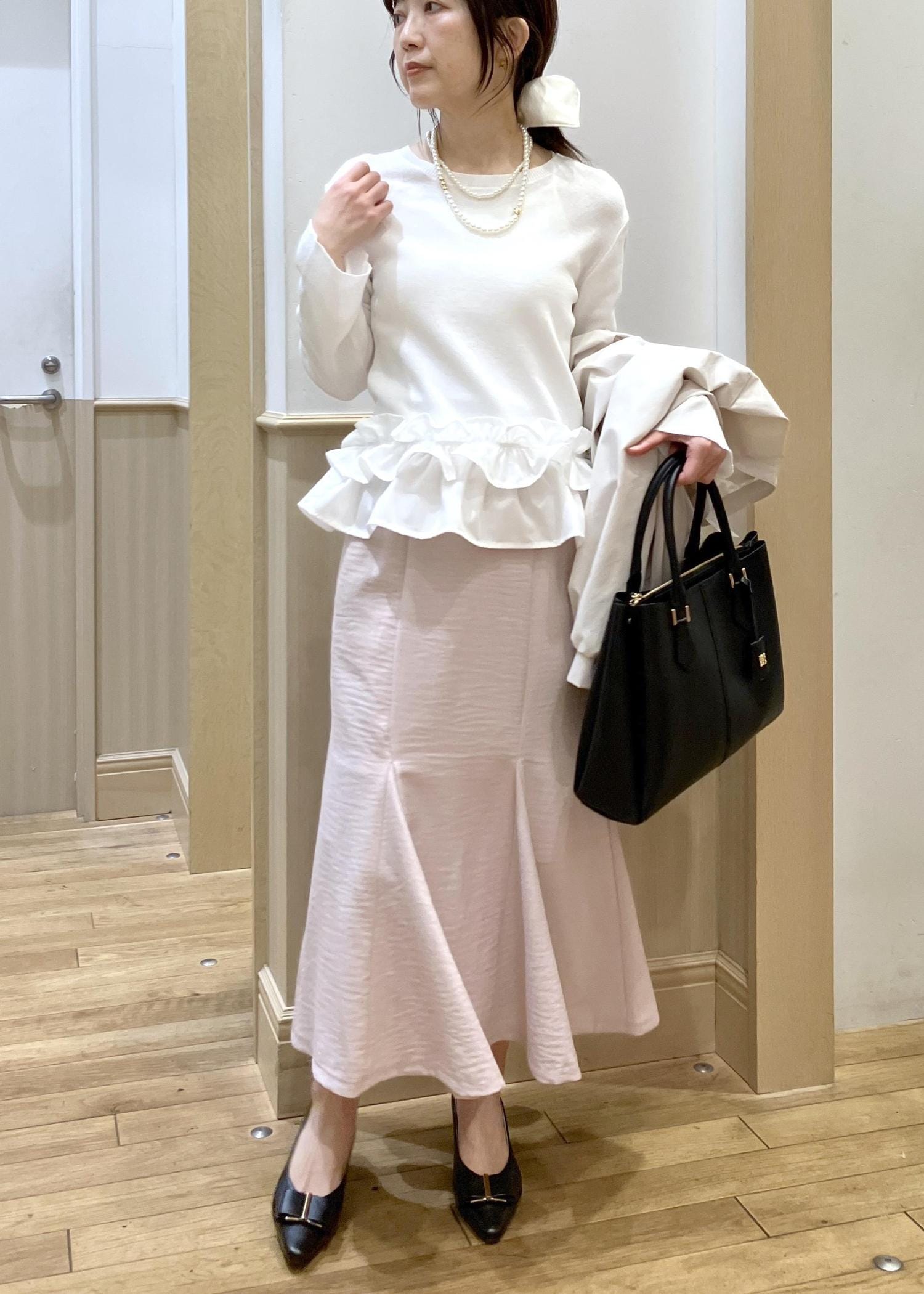 ピンクカラーが春らしくてカワイイskirtをメインに通勤服をstylingしてみました。