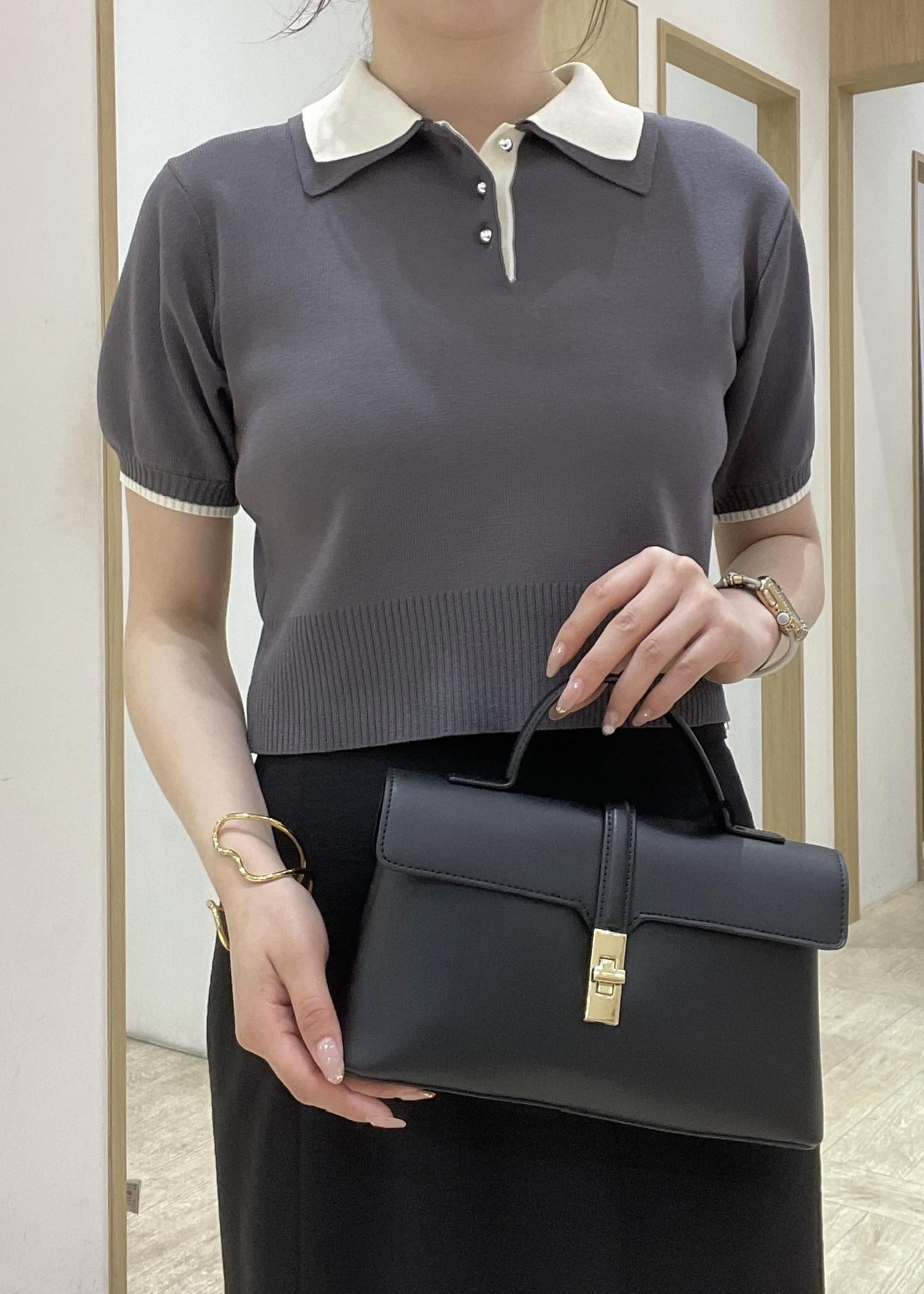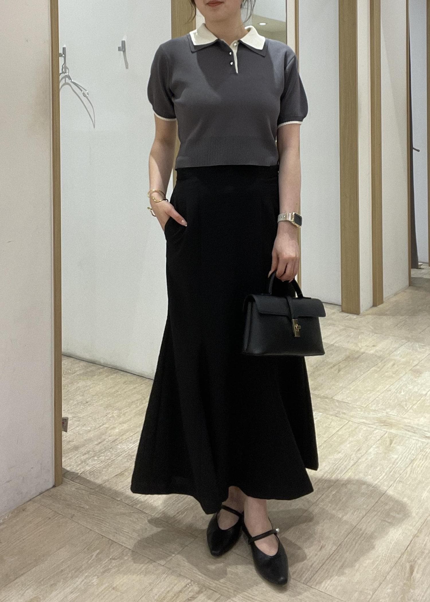 NEW!VISダブルカラー半袖ポロニットトップス/イージーケア・WEB限定カラーグレー / F¥5,489レビュー166センチフリーサイズ着用で