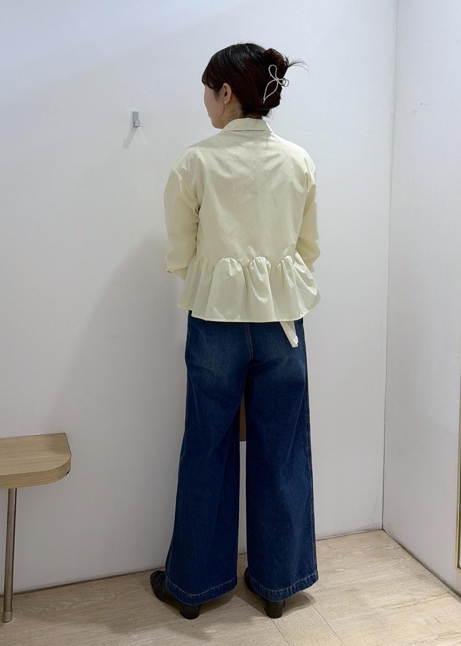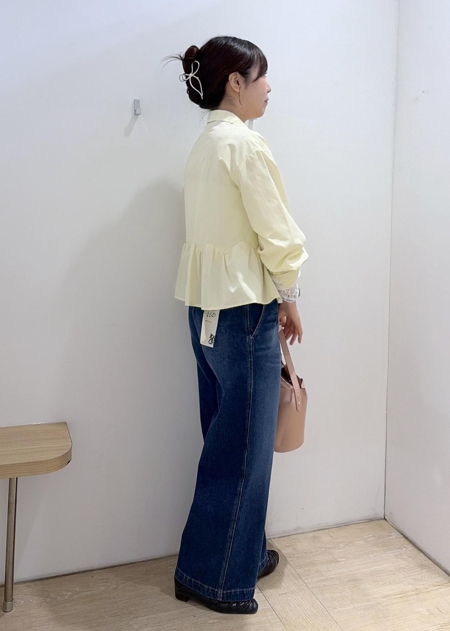 裾のフリル位置が少し高めなので骨ストさんは少し気になるかもです…ですがブラウスのボタンを全部閉めず少し抜け感出してきるとすっきりして着れます⸜ ෆ‪ ‪⸝‍