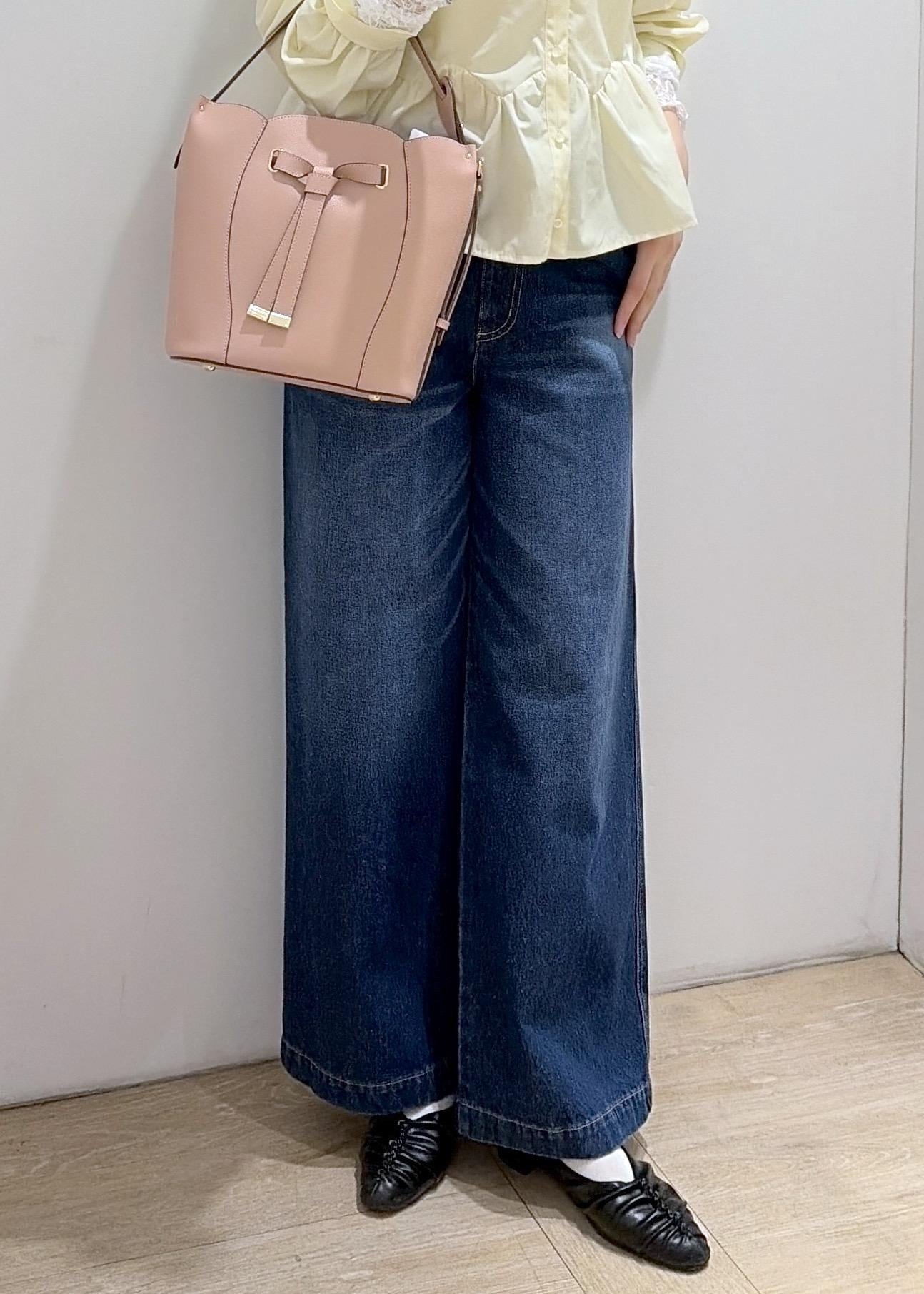 紐ベルト付きのワイドデニム!