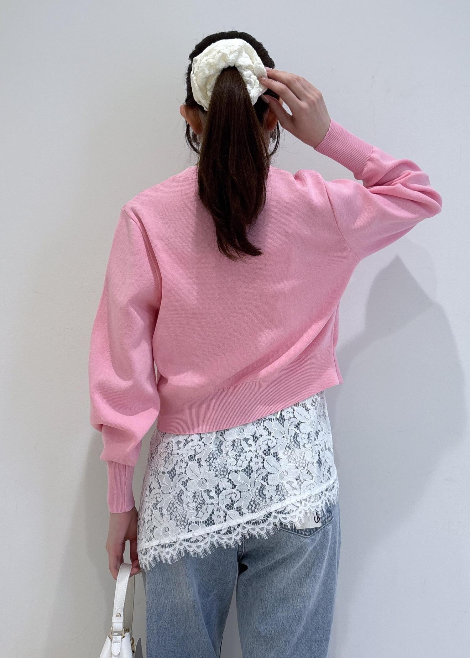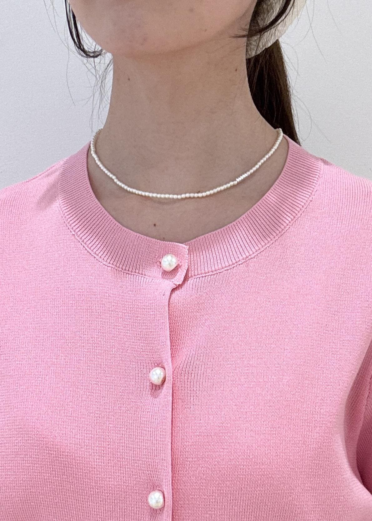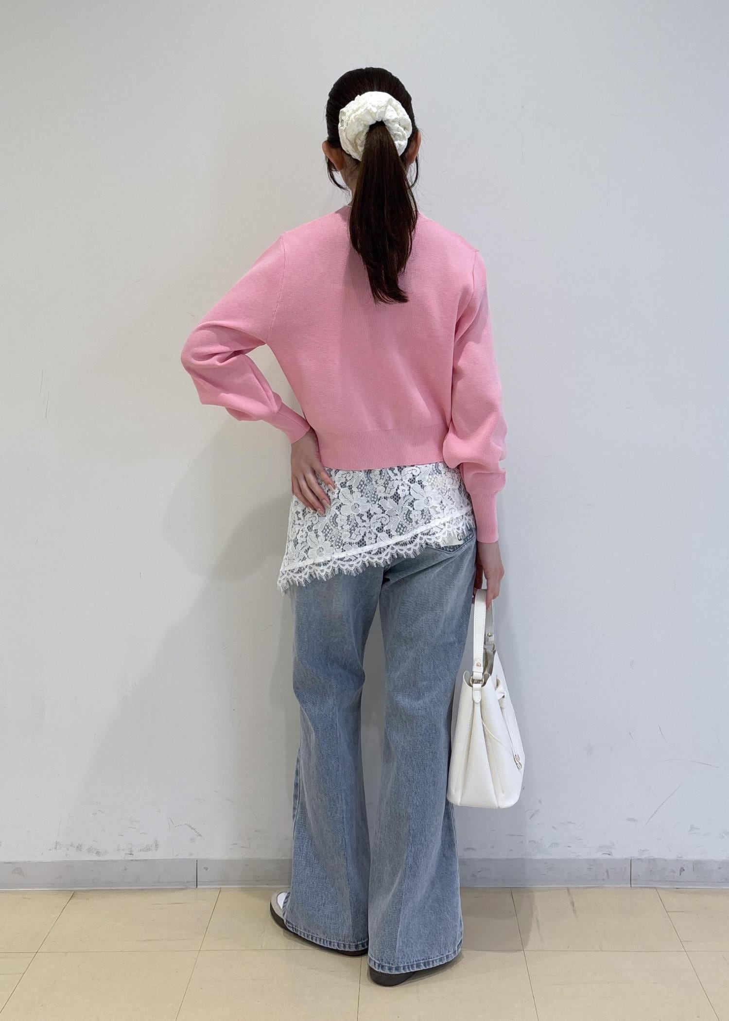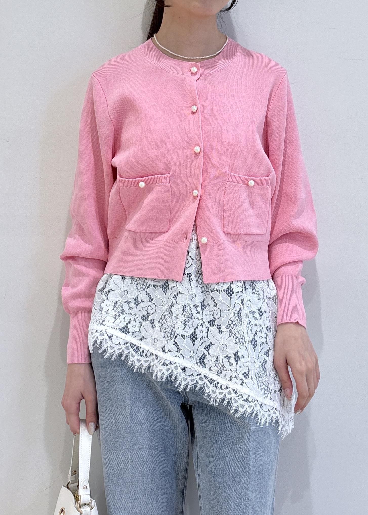 お花見にもぴったりなピンクのカーディガンが目を惹きます!