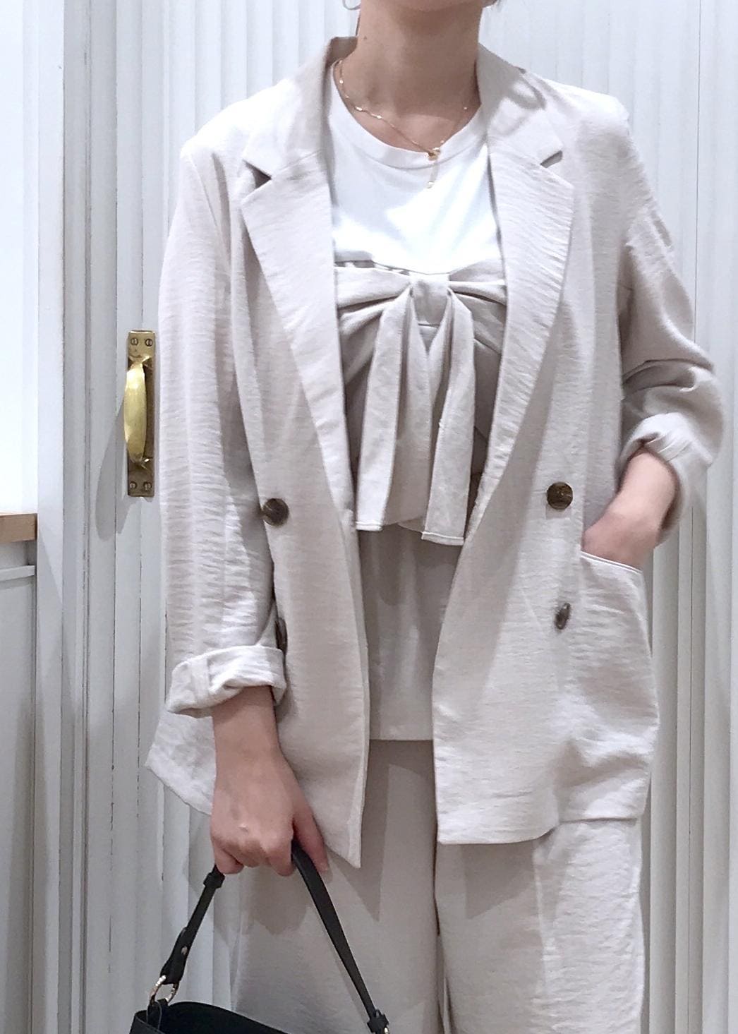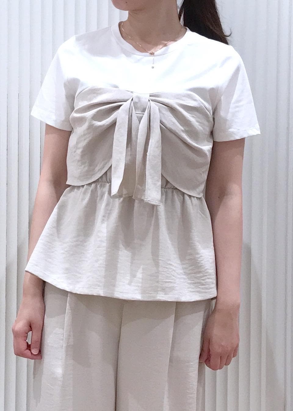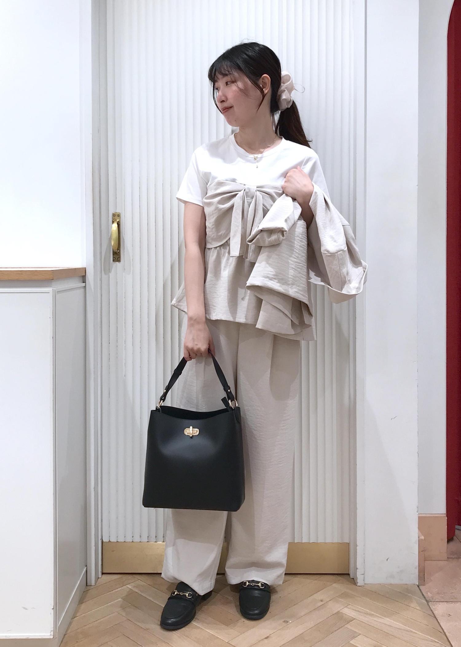胸元の大きめリボンですが、甘過ぎないデザインなのでボトムはセットアップでもデニム等にも色々着回しが効くトップスですよ。 -