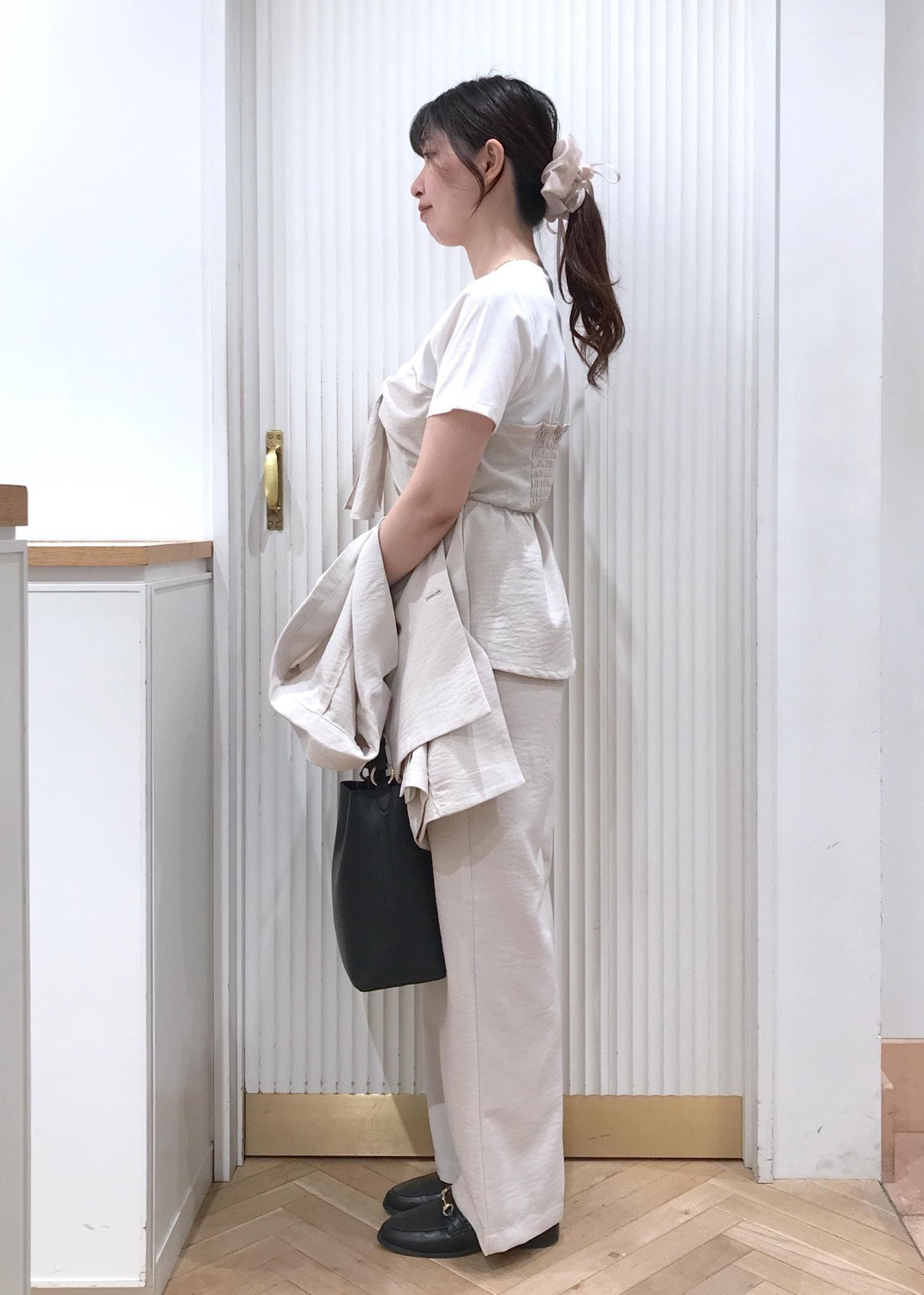 ワイドパンツなので身体のラインを拾い過ぎず、サラッとした生地感で涼しく着用出来ます。
