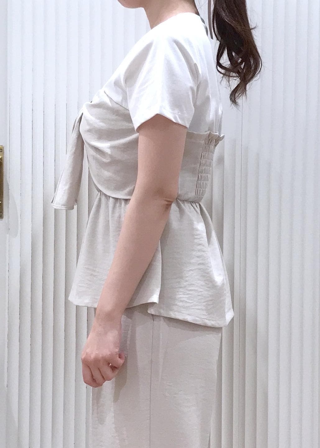 胸下で切替があるので、スッキリ着用出来るカットソー素材の半袖トップスです。