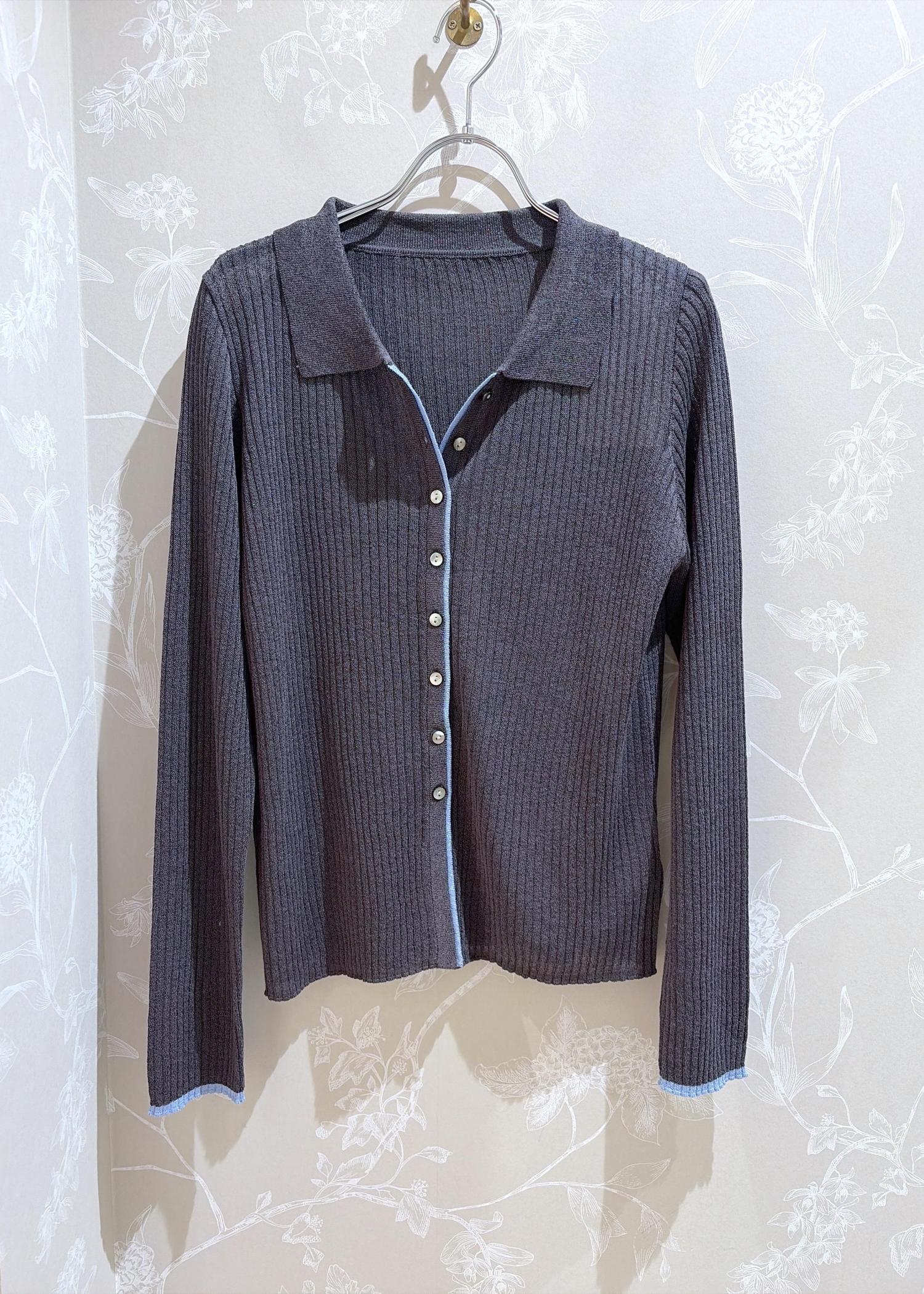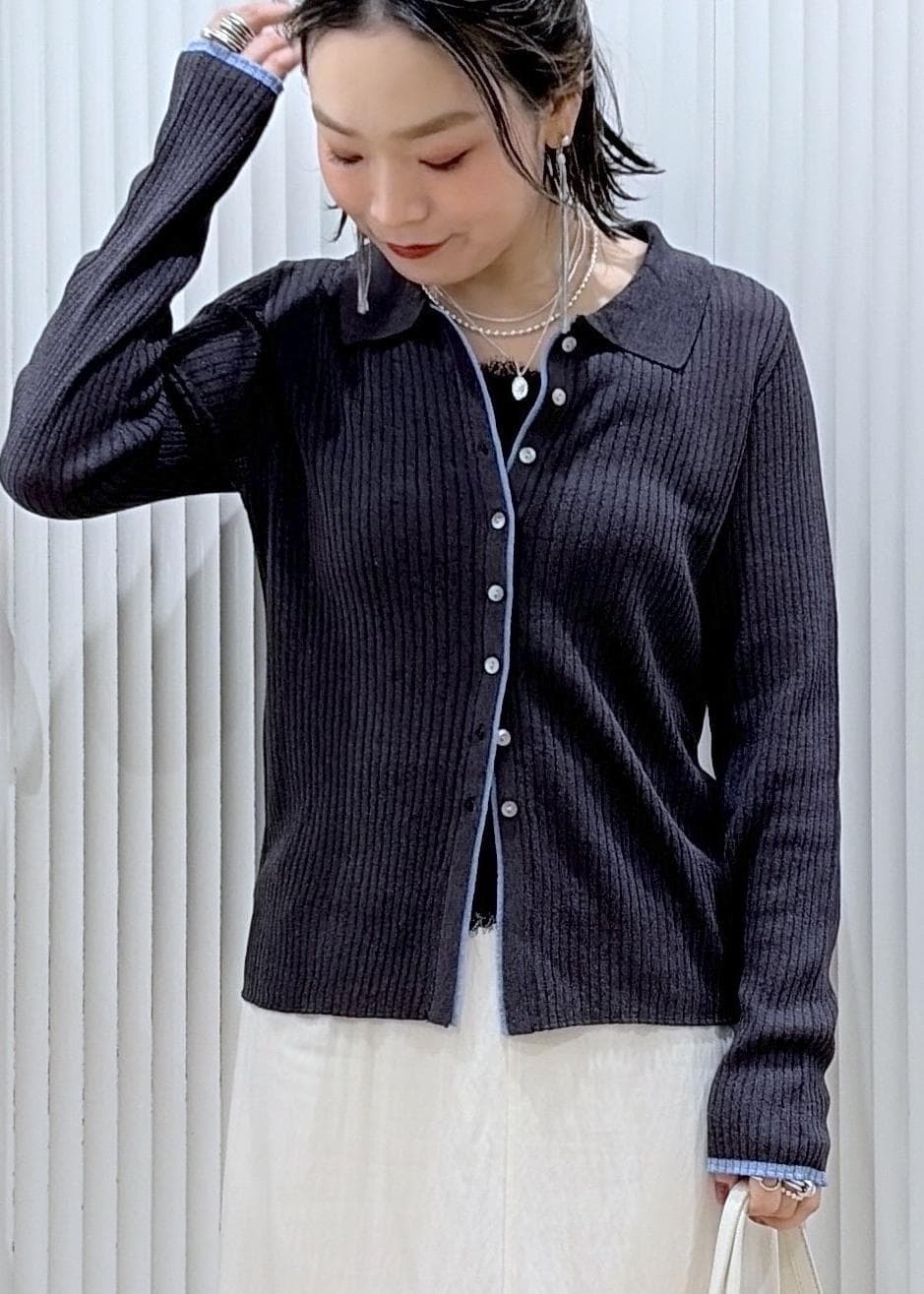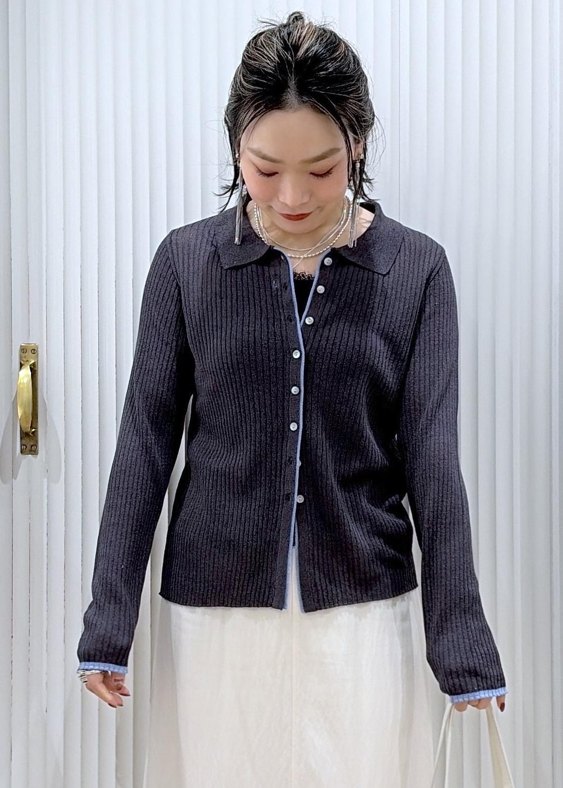 VISポロ襟配色シアーリブカーディガン/イージーケアチャコール / F¥6,589レビュー157cmで腰下辺りの着丈でした。