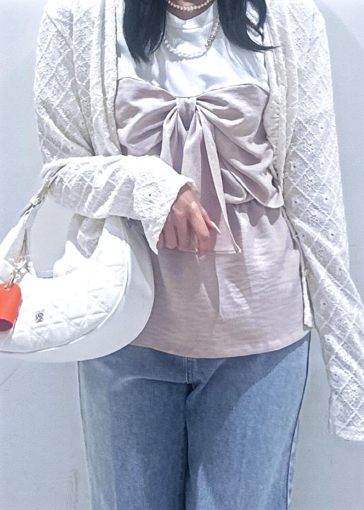 NEW!VIS美easyリネンライクリボンビスチェトップス/イージーケア・接触冷感・セットアップ対応ピンク / F¥5,489レビューTシャツ部分とビスチェ部分ともにマシーンウォッシャブルで接触冷感で夏にも◎