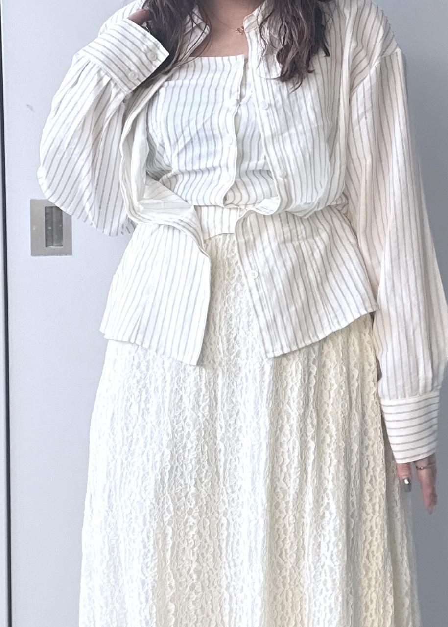 VISレイヤードストライプシャツオフホワイト / F¥6,589レビュー中のビスチェがくっついているレイヤード風シャツです。