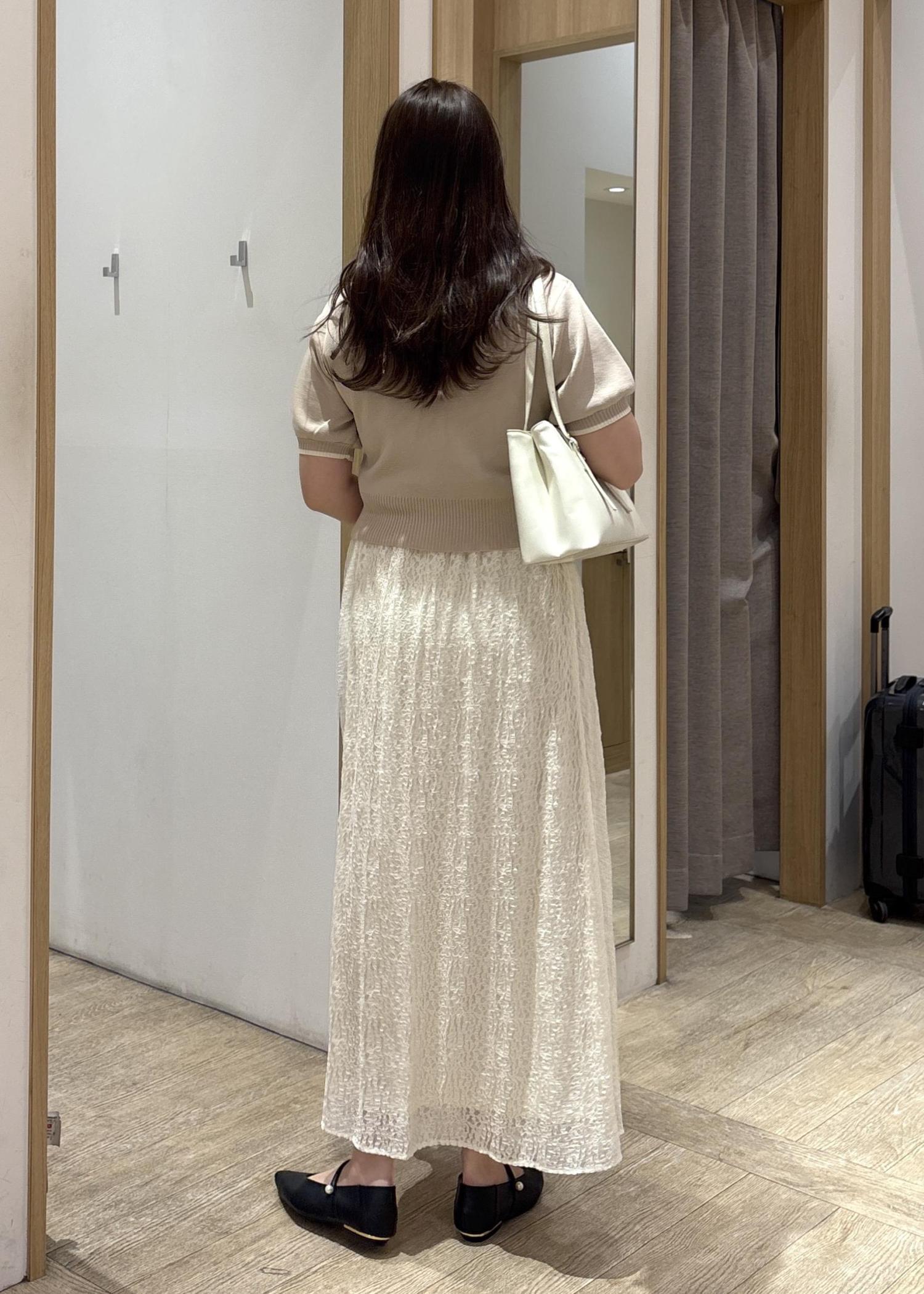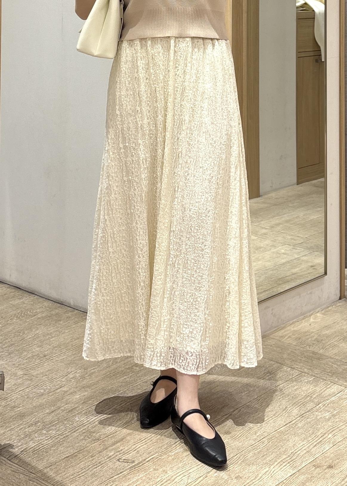VISラメレースフレアスカートキナリ / F¥6,919レビューウエストはすっきりとした設計で、腰まわりのボリュームを抑えつつ、裾にかけて自然に広がるラインが特徴。骨格ストレートさんでも重たく見えにくく、上品なバランスで着用できます!