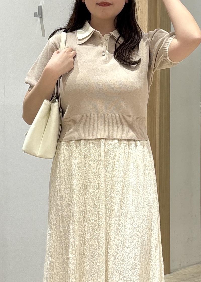 NEW!VISダブルカラー半袖ポロニットトップス/イージーケア・WEB限定カラーベージュ / F¥5,489レビュー伸縮性のあるニット素材で着心地が良く、ボディラインを拾いすぎない絶妙なサイズ感もポイント。着丈はやや短めで、自然とウエスト位置を高く見せてくれるため、スタイルアップ効果も期待できます!