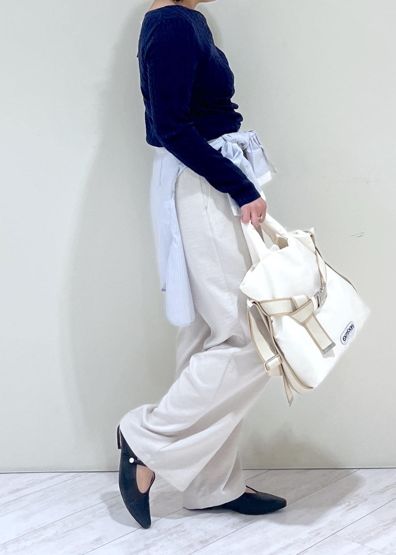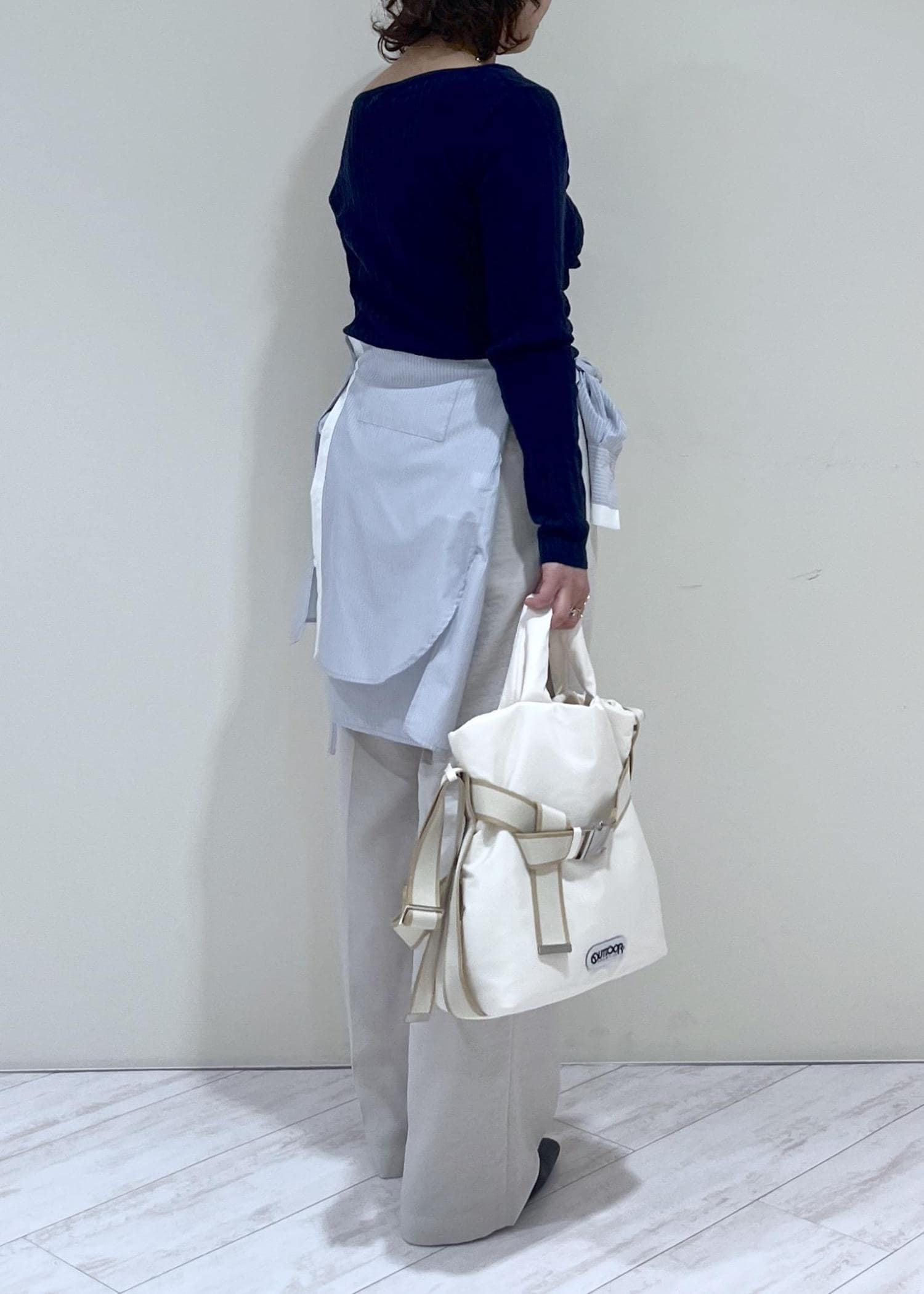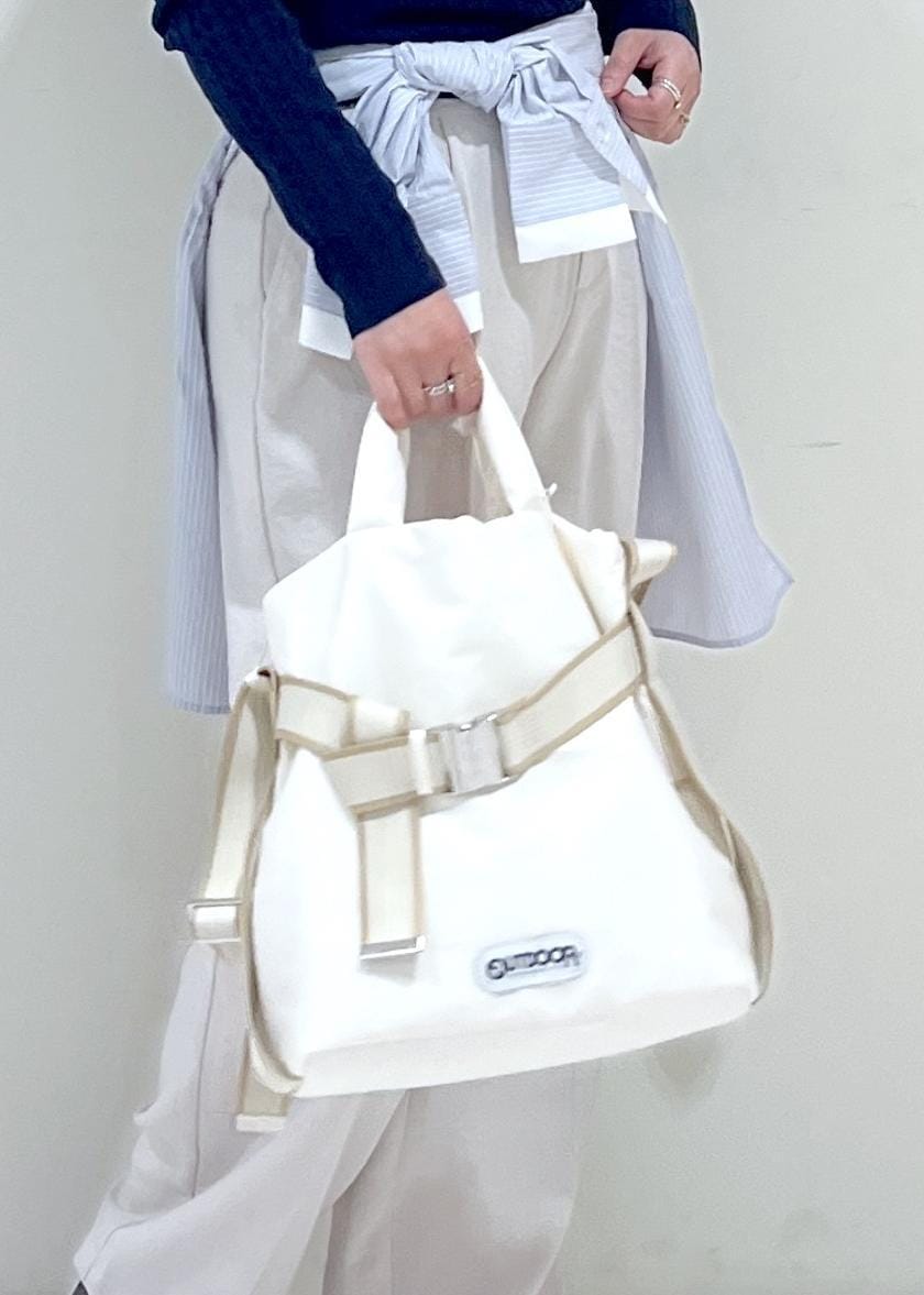 ゆったりしていますが、後ろで絞りを入れられるデザインで、バッグスタイルをスッキリとた印象にできます。