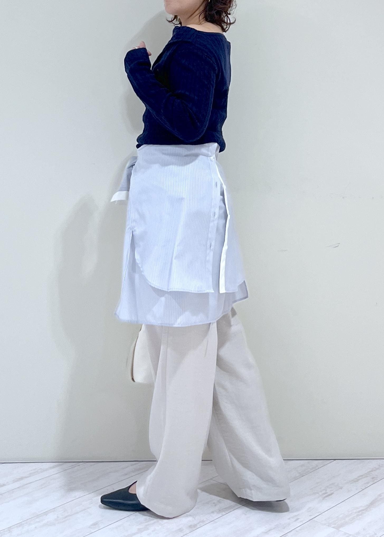 少しハリのある素材なので綺麗めにもカジュアルでも◎ -