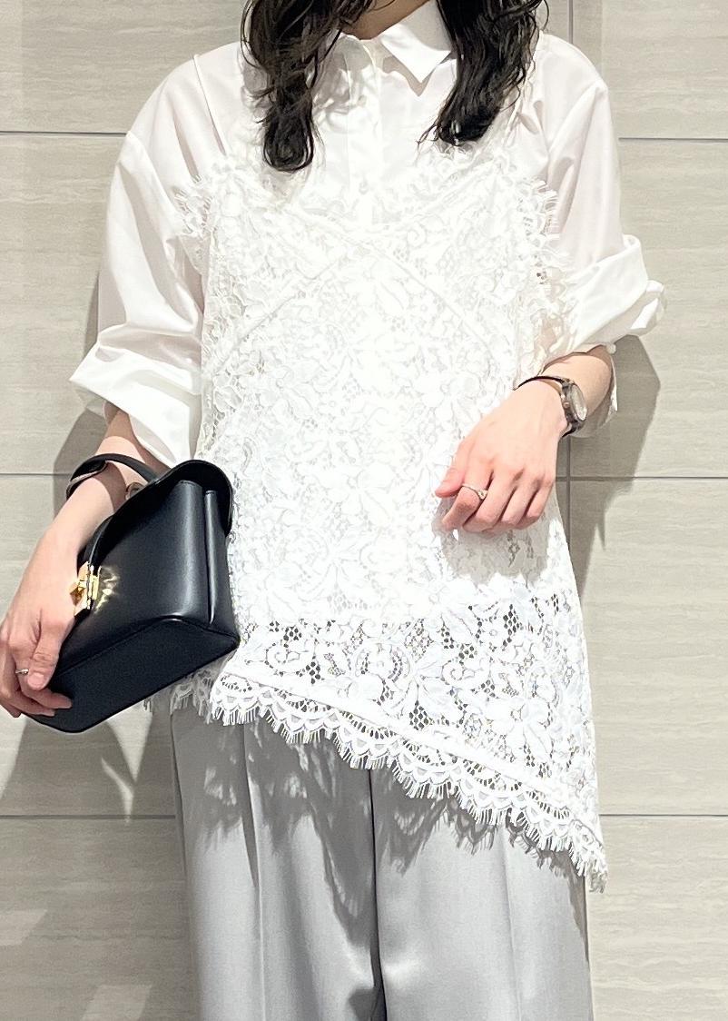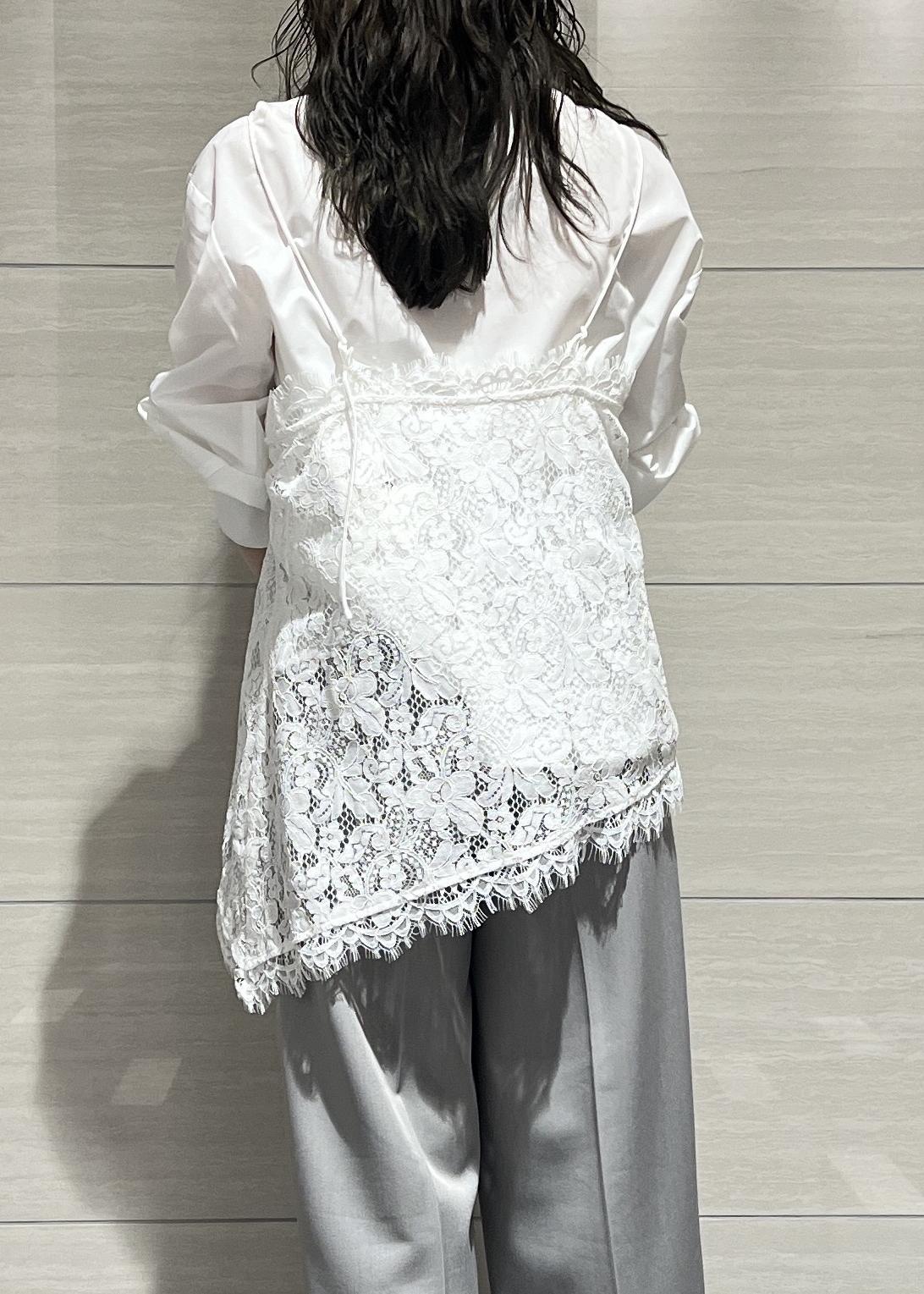 VISレースアシンメトリーキャミソールオフホワイト / F¥6,589レビュートレンド感のあるアシンメトリーのレースキャミ。身幅もゆとりがあるのでシャツなどレイヤードしやすいです。