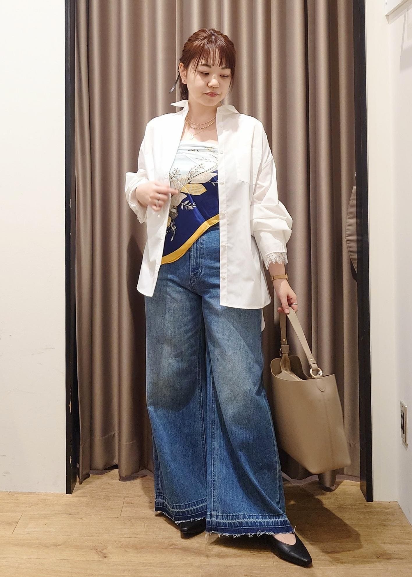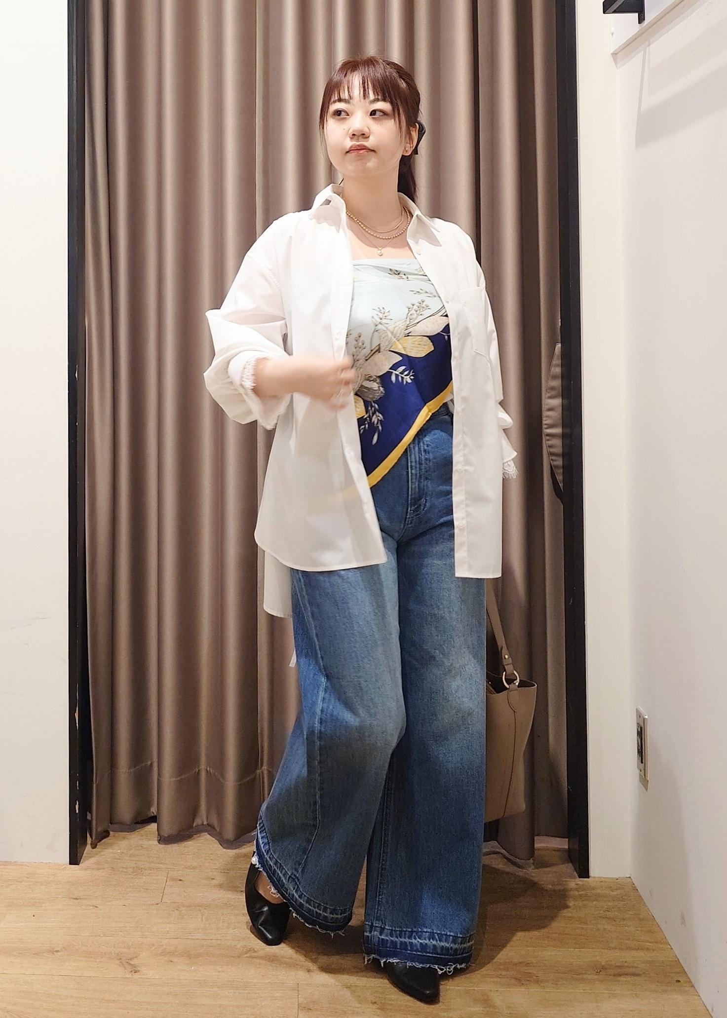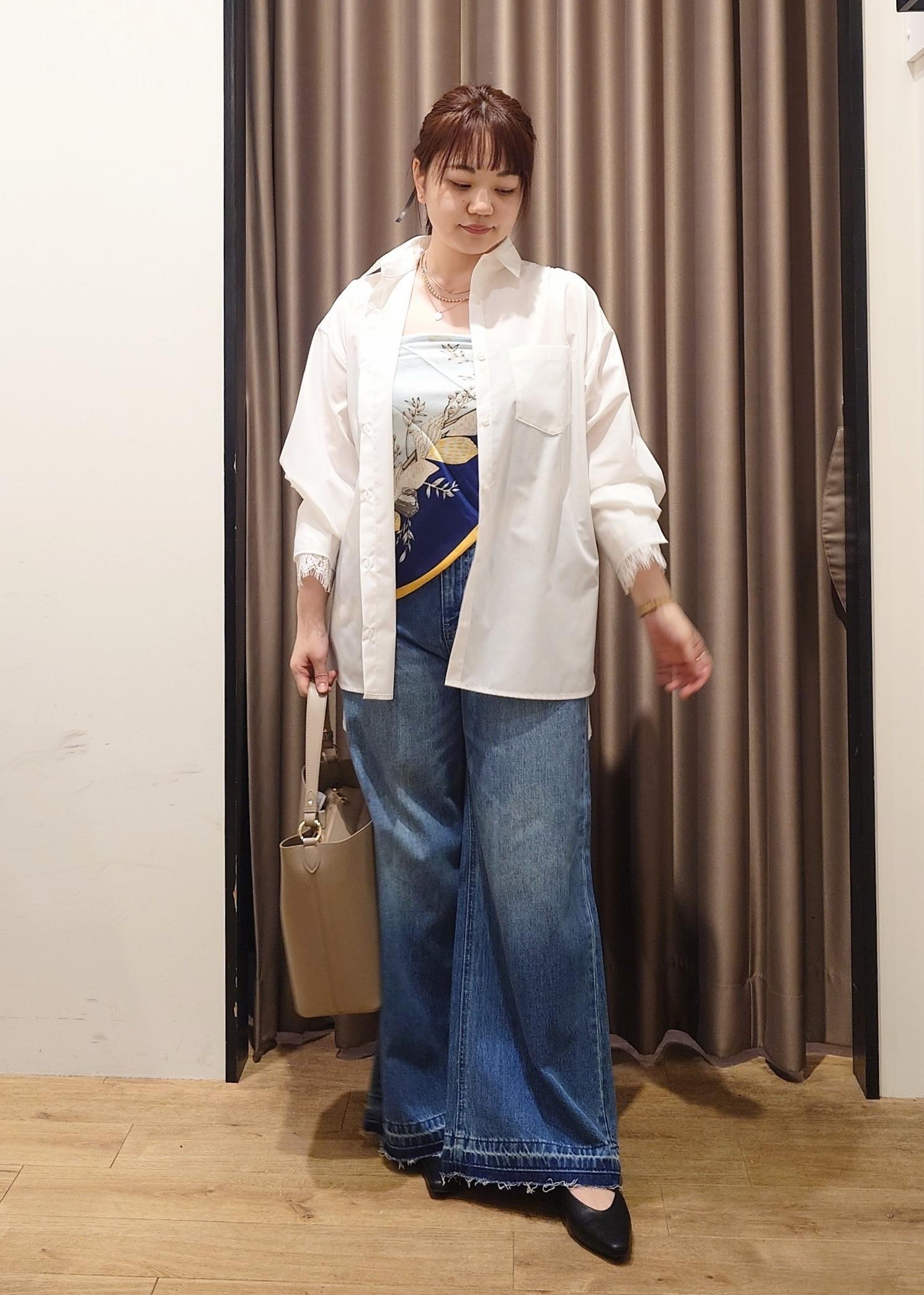 スカーフをビスチェ風に使ったカジュアルスタイル。