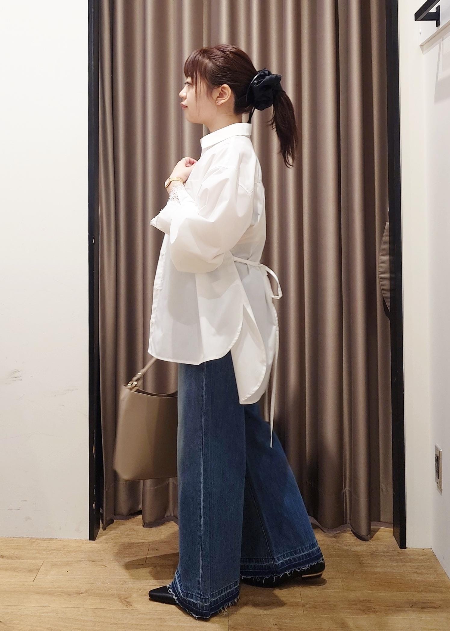 ワイドすぎない幅で、綺麗めトップスにも合わせやすいでせ。