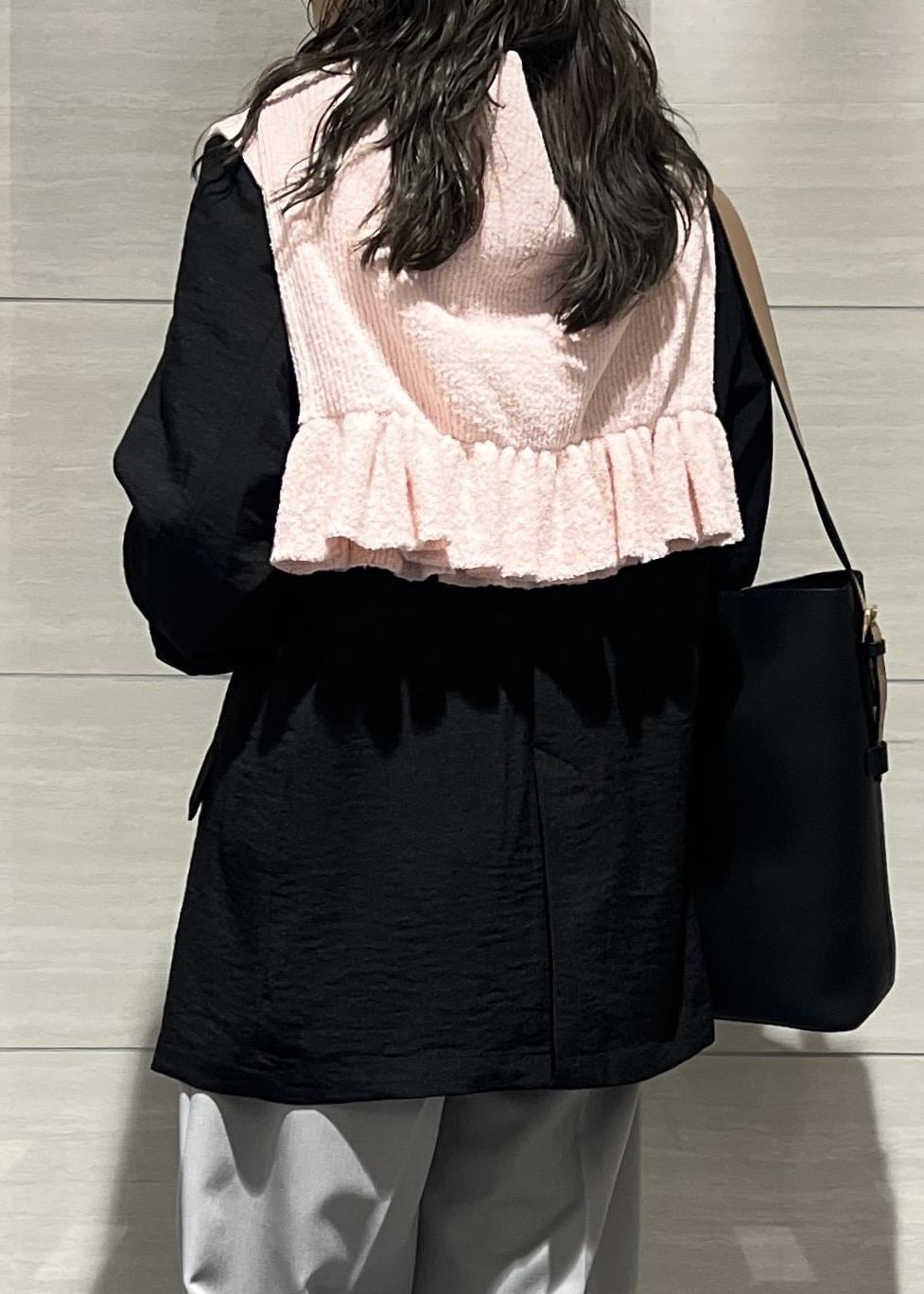 VISスラブヤーンペプラムフリルニットプルオーバーピンク / F¥5,929レビュースラブヤーンで少しカジュアル感があるので、ジャケットに肩掛けしても可愛いです✨