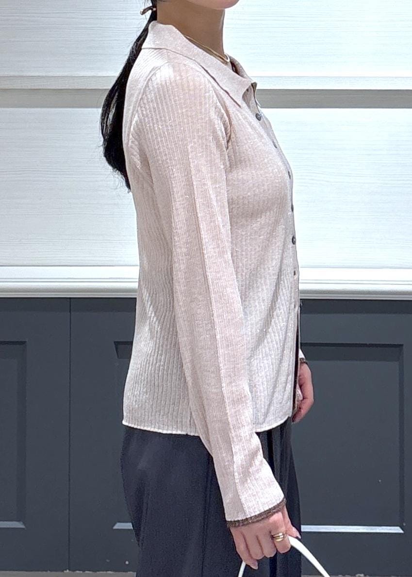 VISポロ襟配色シアーリブカーディガン/イージーケアピンク / F¥6,589レビュー156cmでヒップにかかる丈感でした。