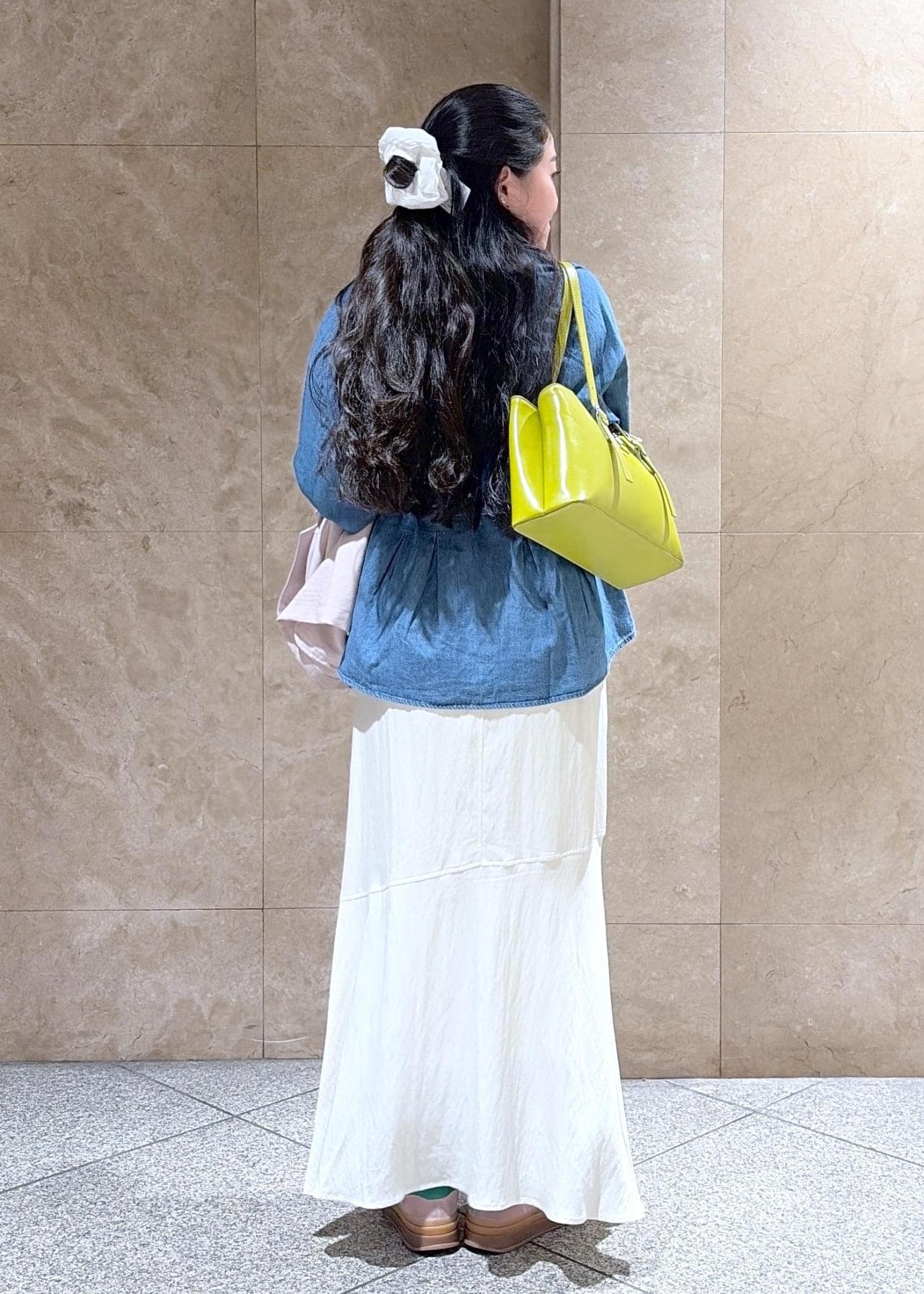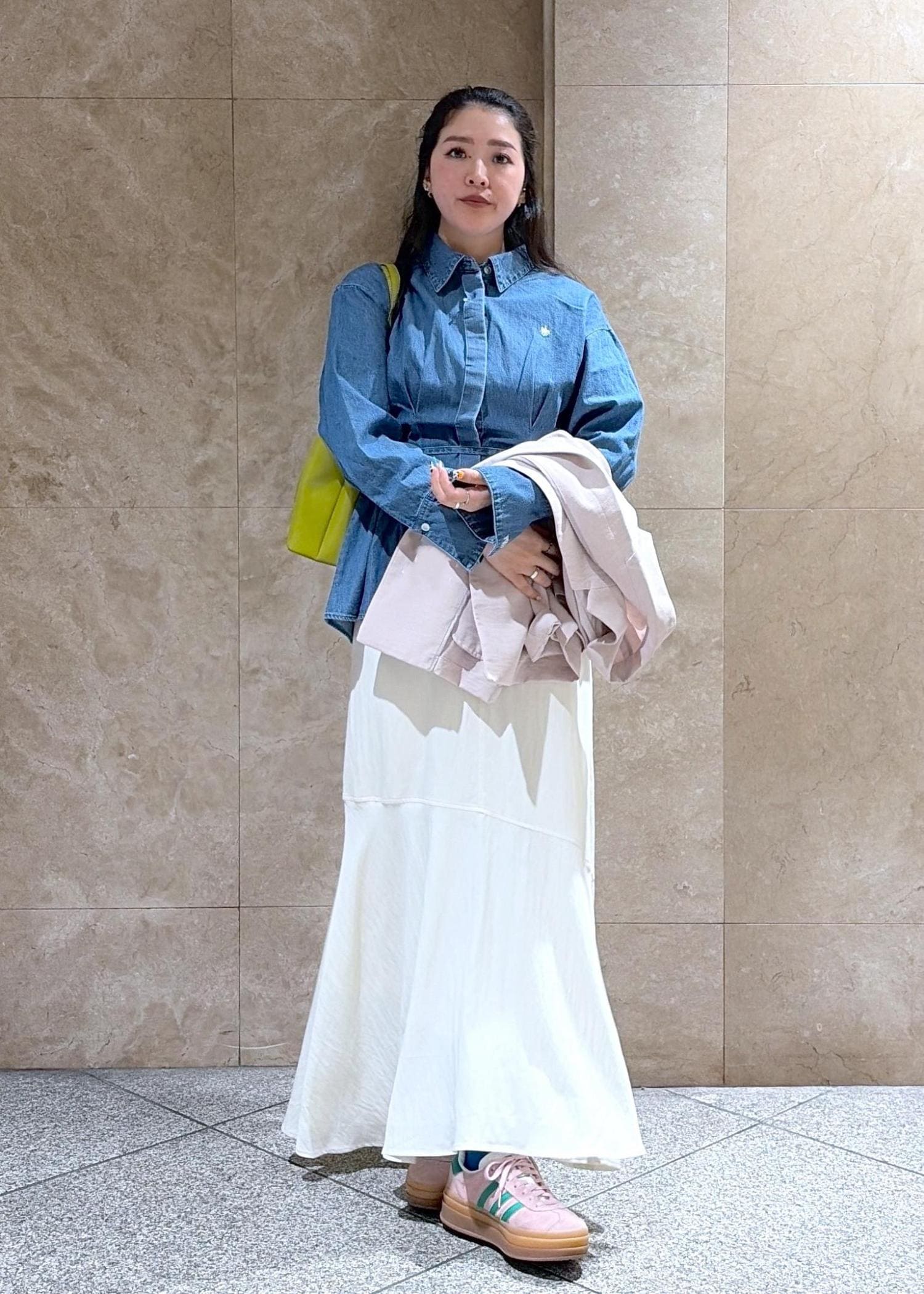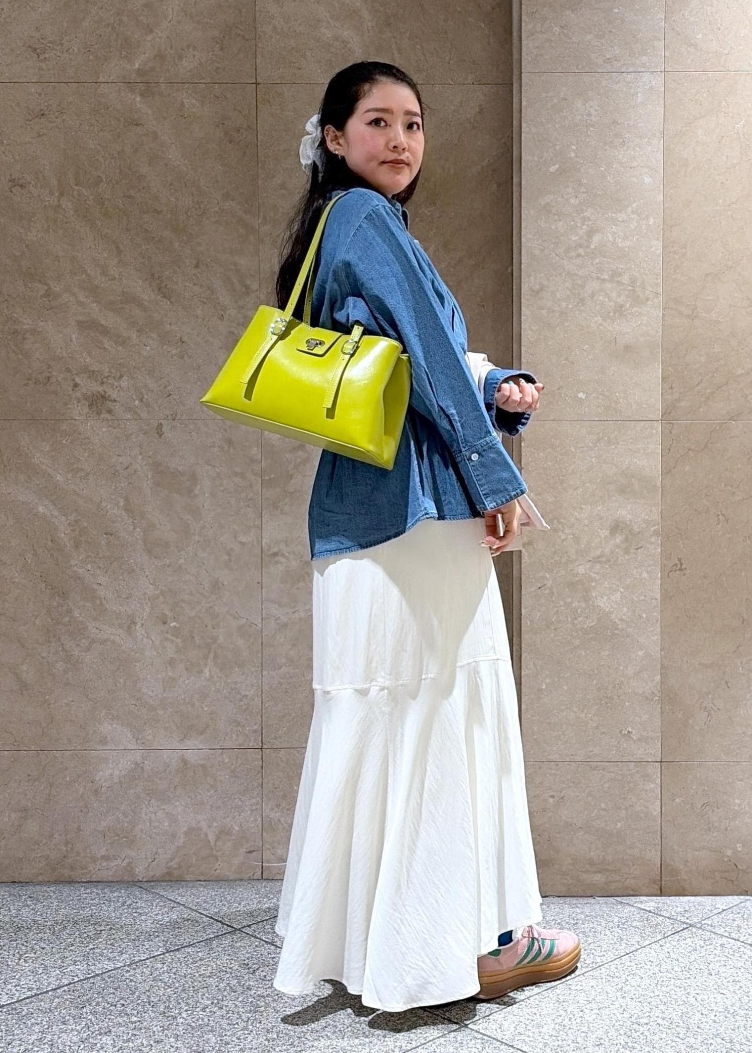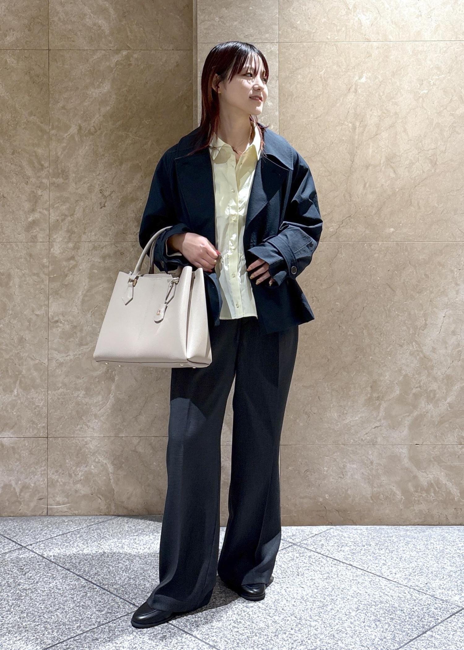 これからの季節こういう生地感のものを選んでしまいがちですが、斜めにLINEが入っていて、人目を引くデザインです◎ -
