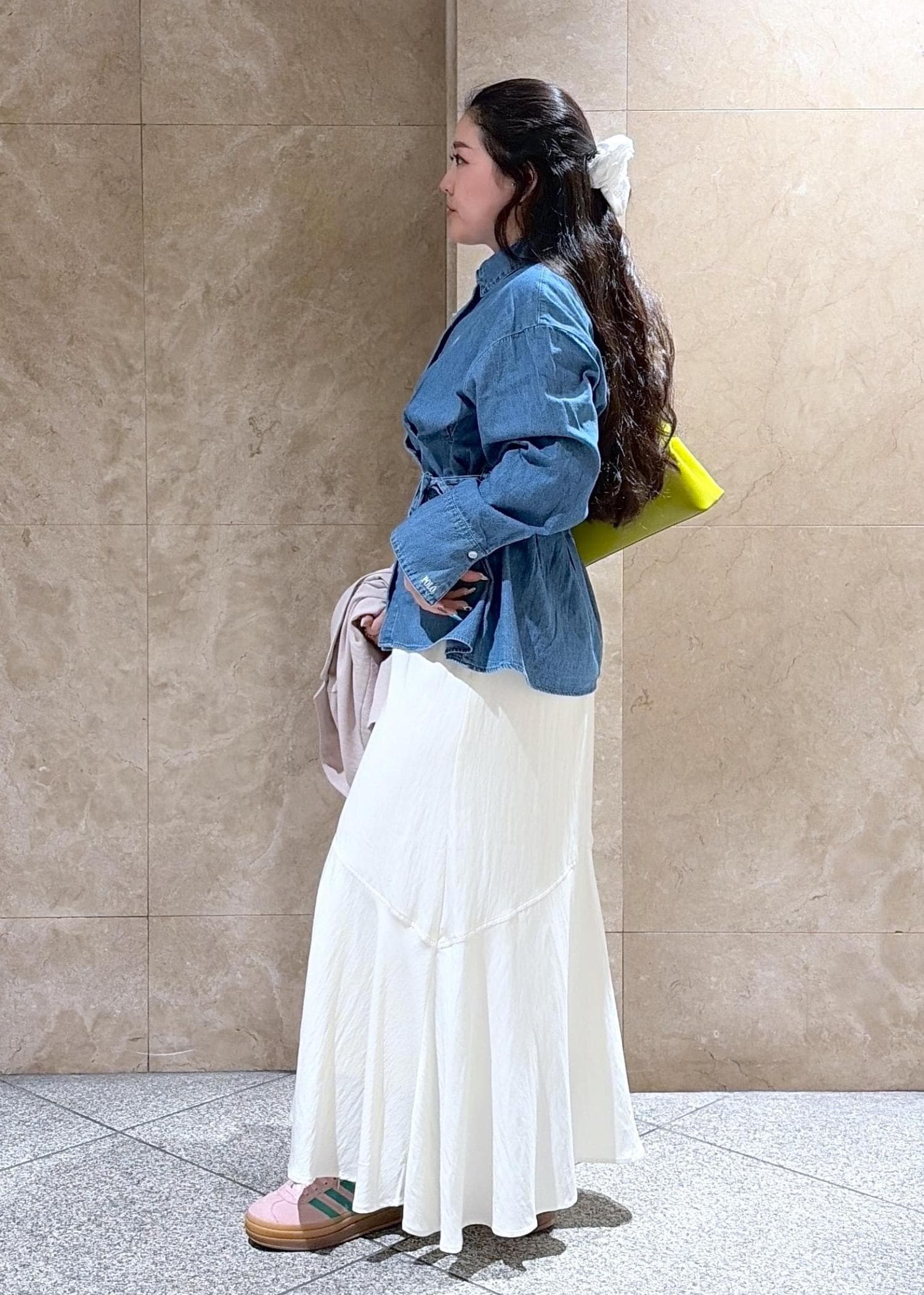 タックの部分のおかげでくびれができるので細見え効果もあります◎