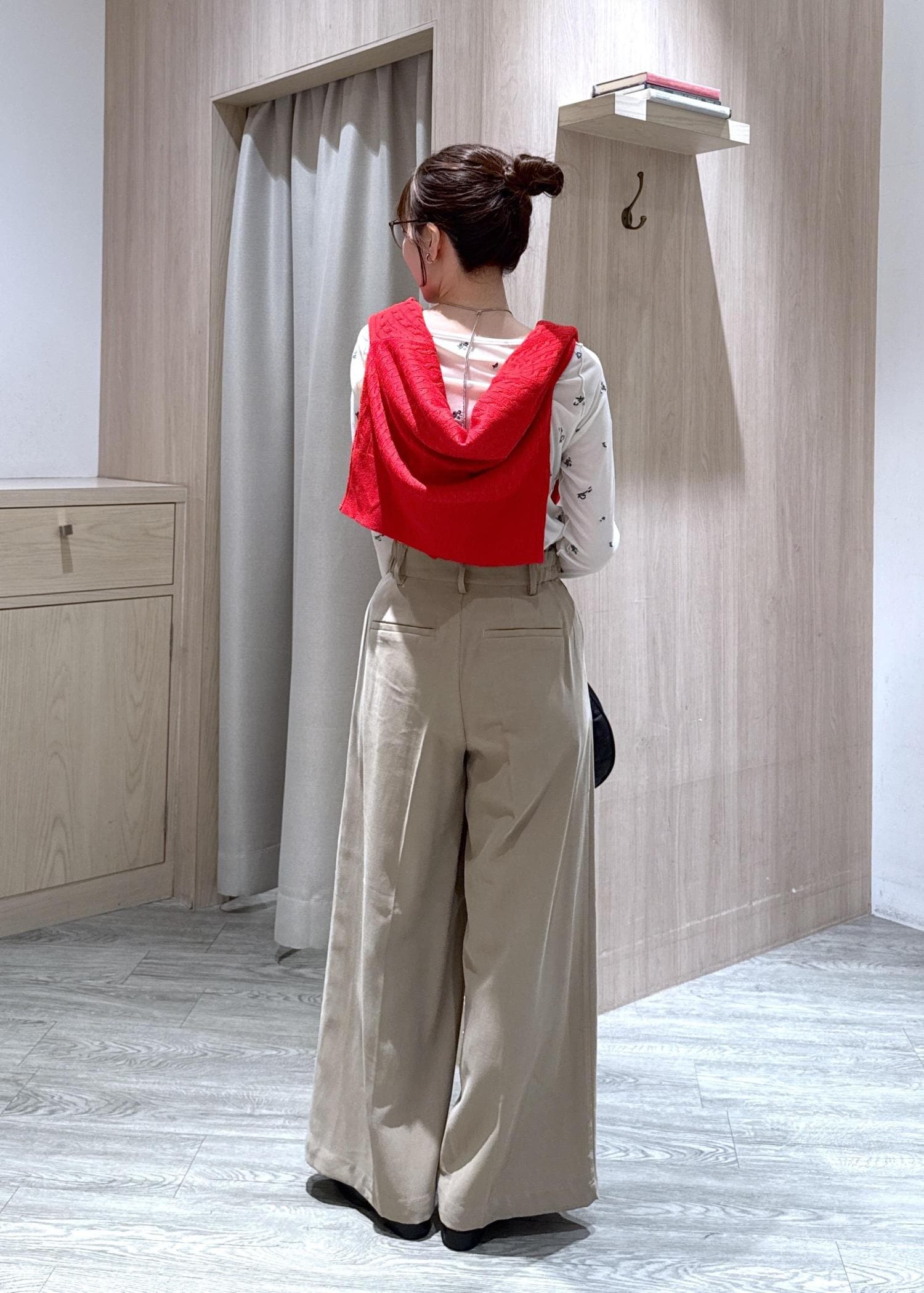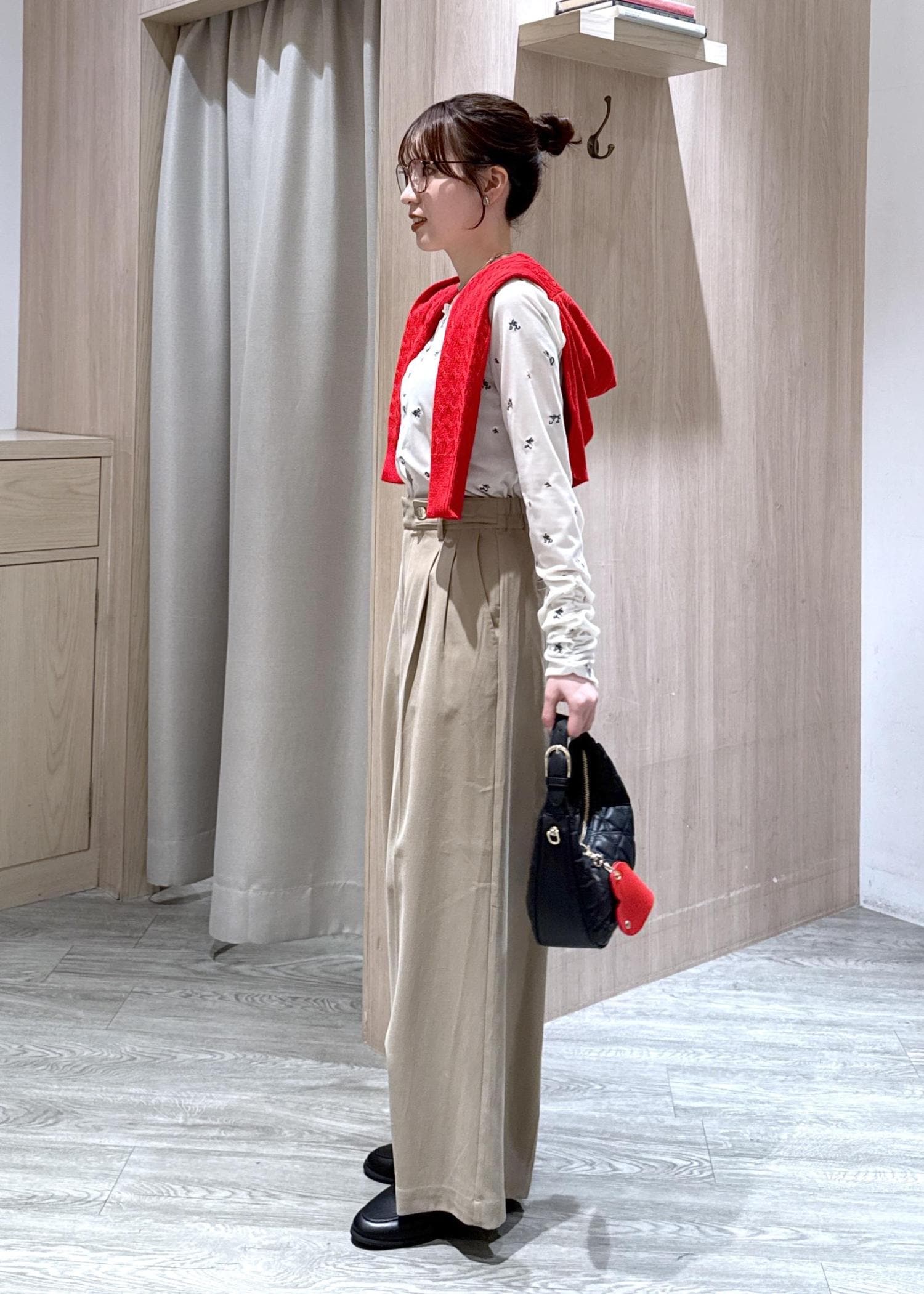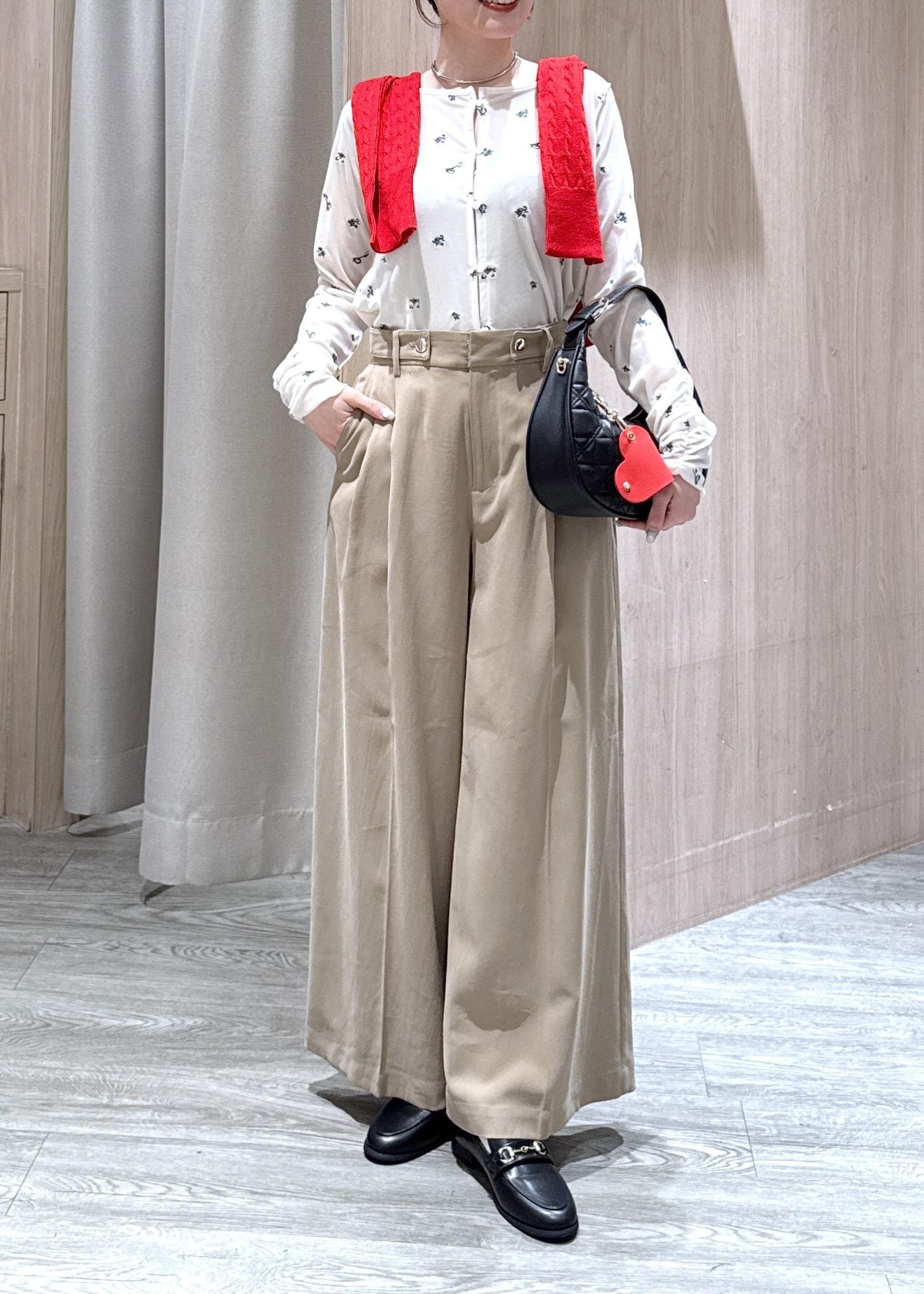 ウエストのボタンデザインがポイントなので、コンパクトなトップスをインして合わせるコーデがオススメです! -