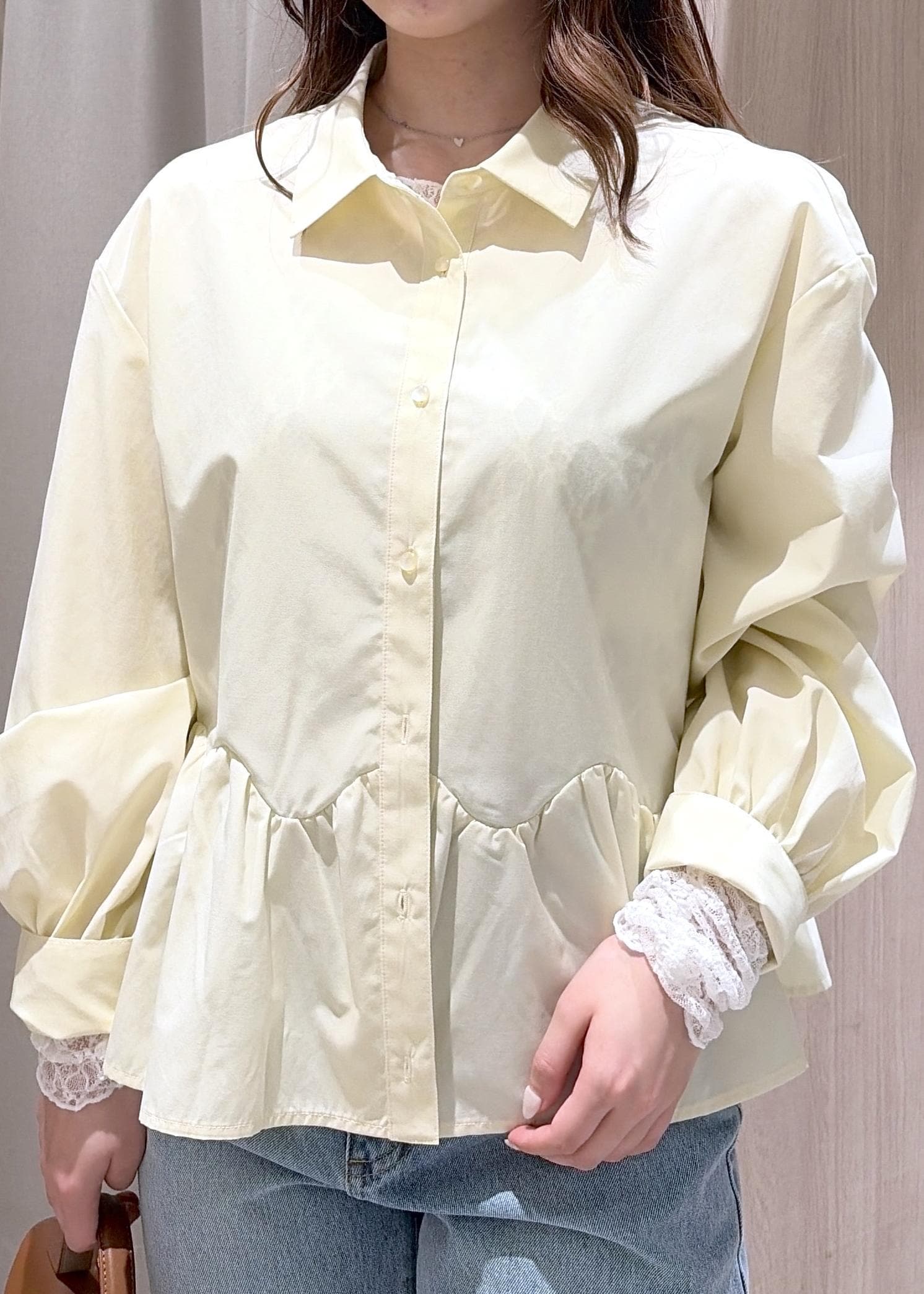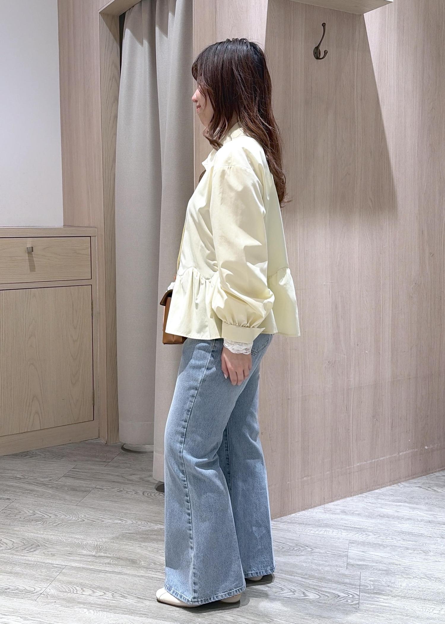 VISウエーブヘムペプラムシャツイエロー / F¥6,589レビュー身長150cmで腰周りが隠れる丈感でした!