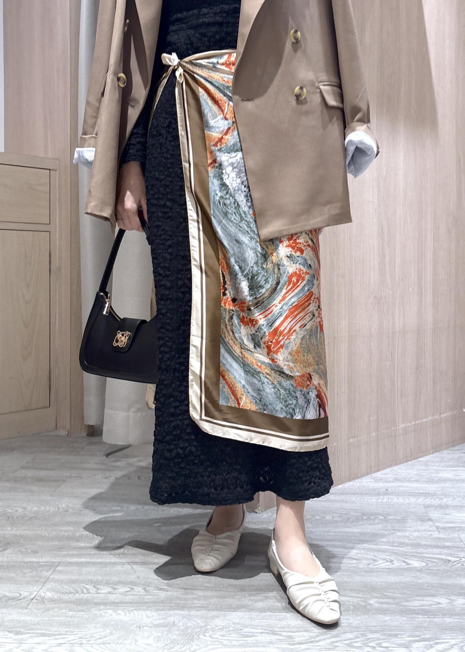 アウターの上から巻いたり、バッグに巻いたりワンポイントにオススメです。 -