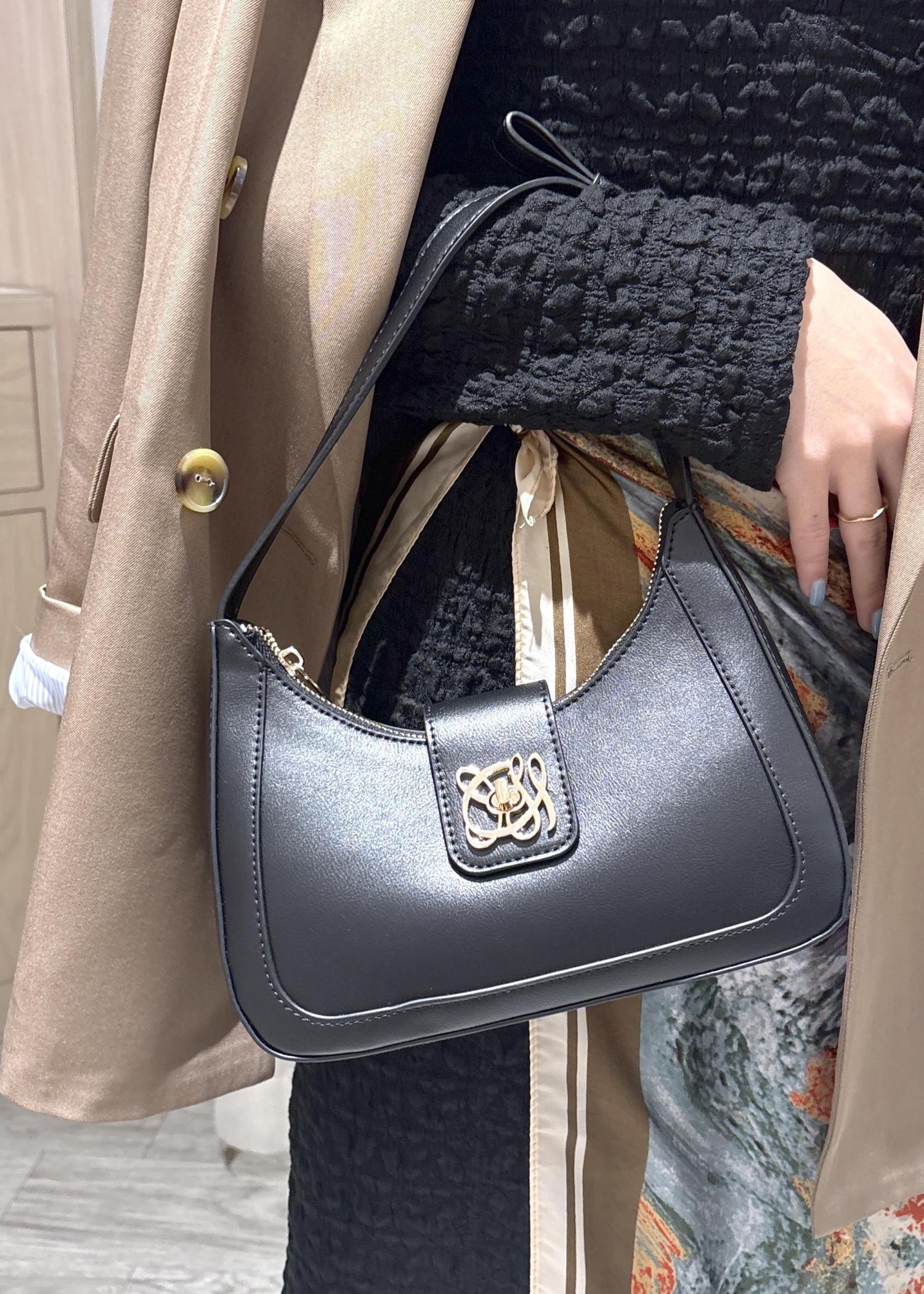 VIS【新色追加】【180℃美人見え】ハンドルリボンワンショルダーバッグブラック / F¥5,929レビューケータイと財布が余裕で入るサイズ感です!