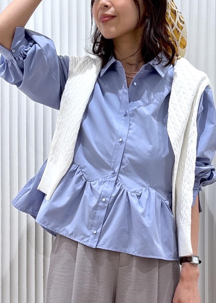 VISウエーブヘムペプラムシャツブルー / F¥6,589レビュー身長164㎝、フリーサイズ着用です。