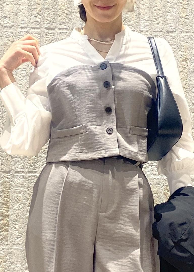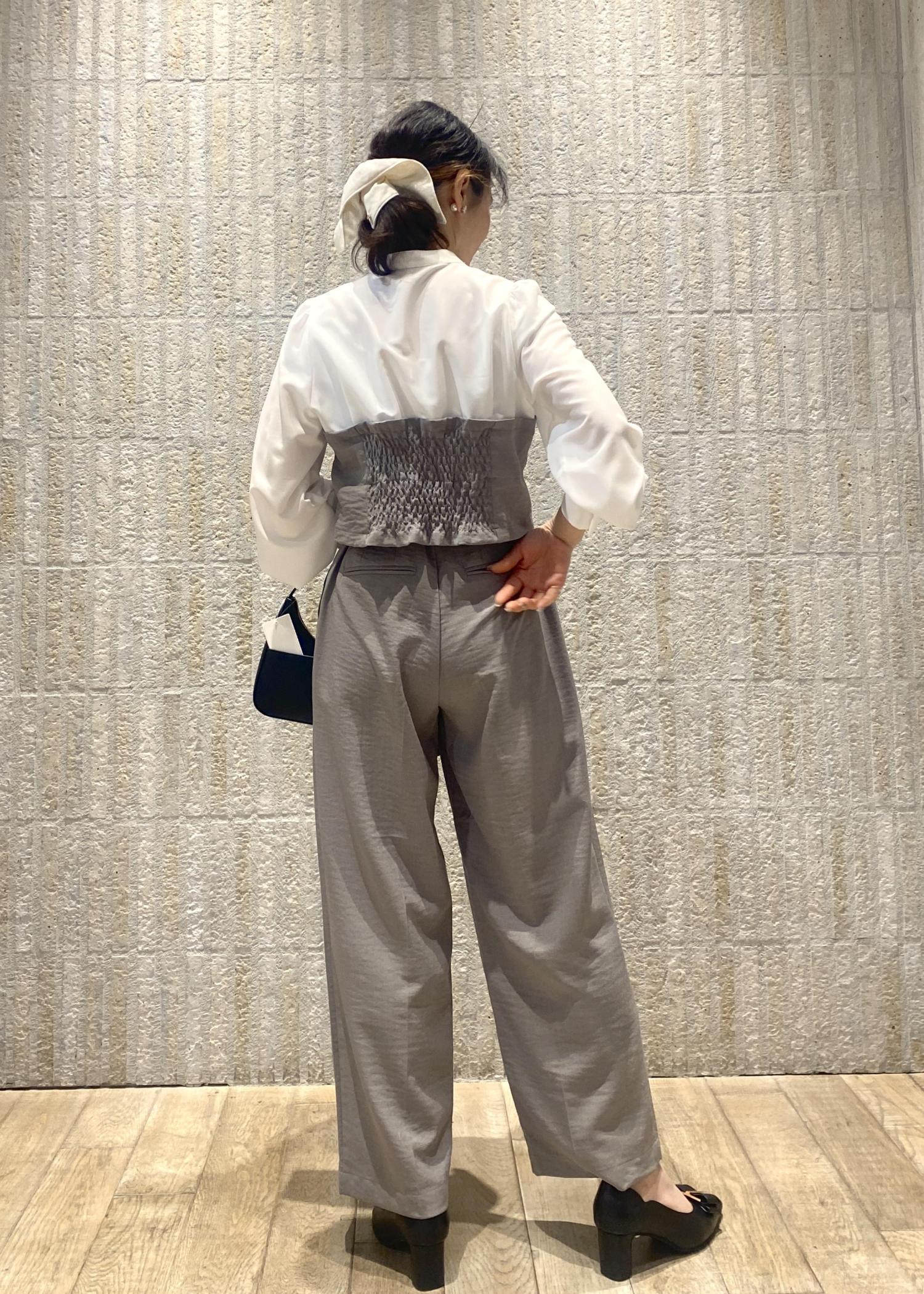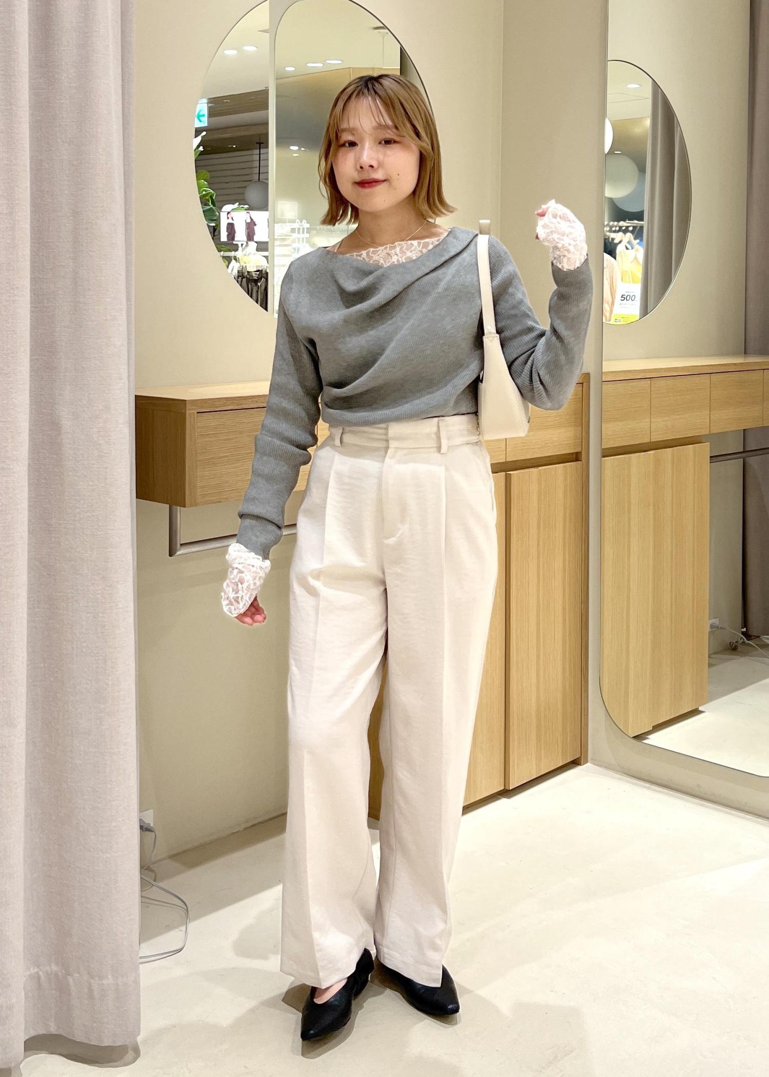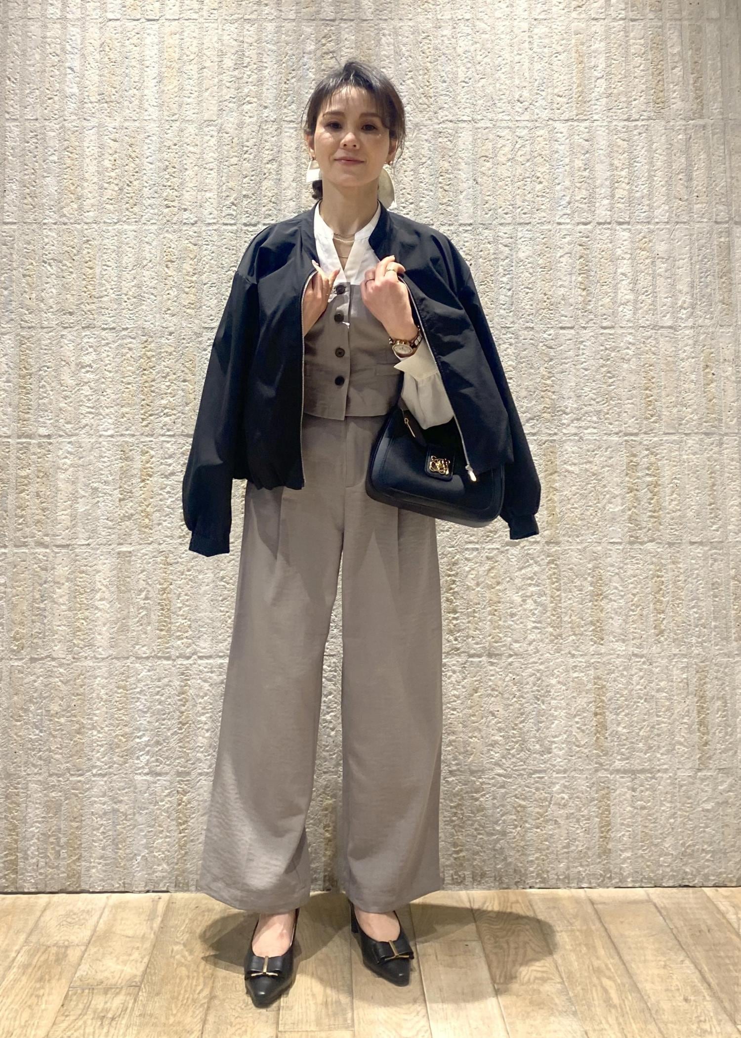 パンツのセットアップでハンサム&レースやパールの小物でフェミニンさを出して、この春はフェミニンハンサムなスタイリングがオススメです♪