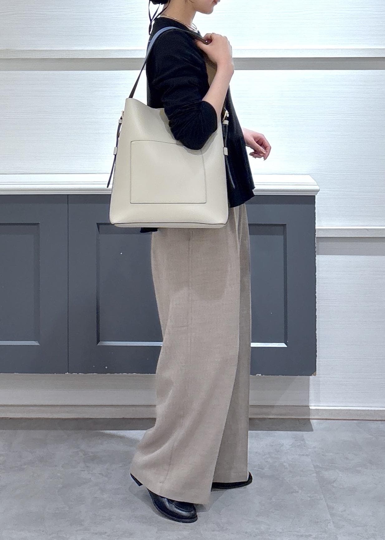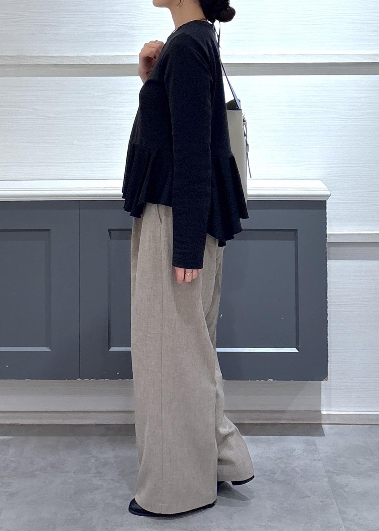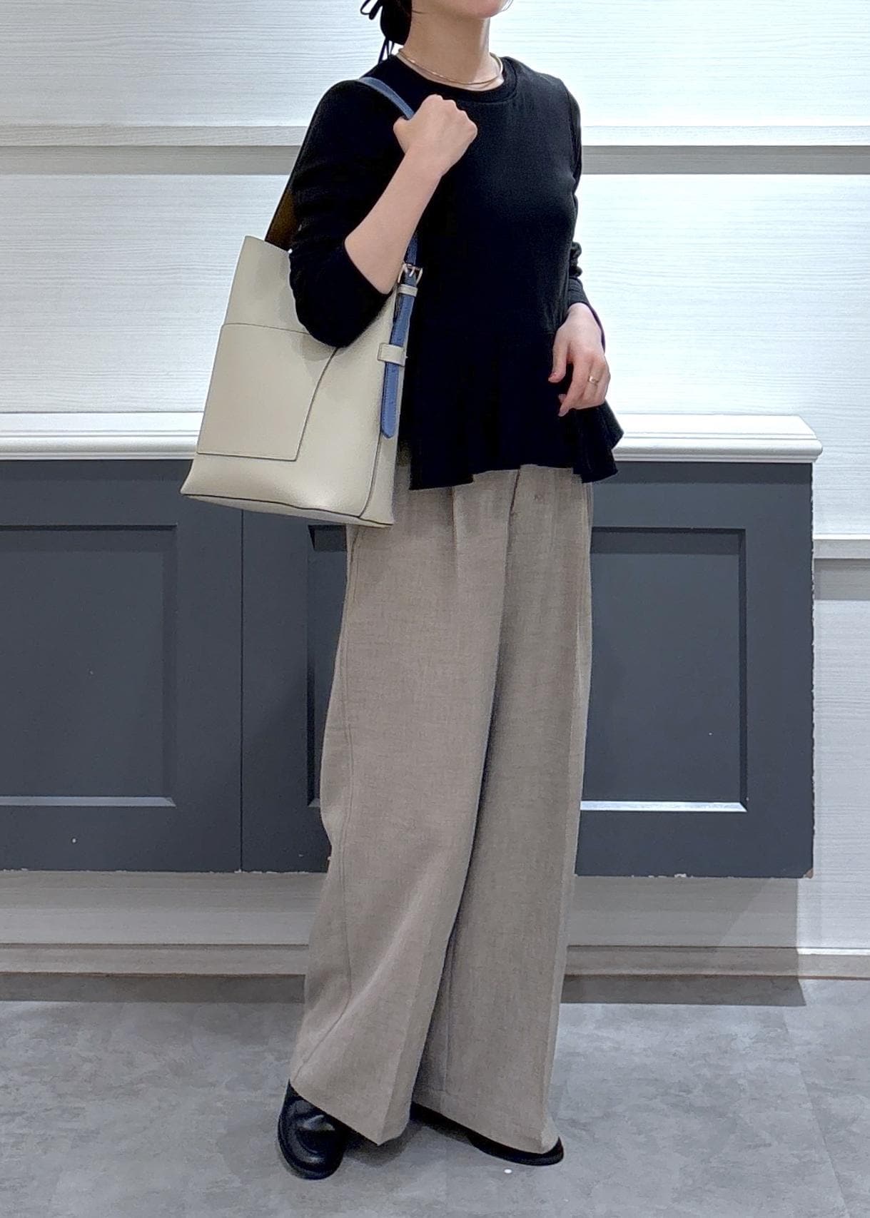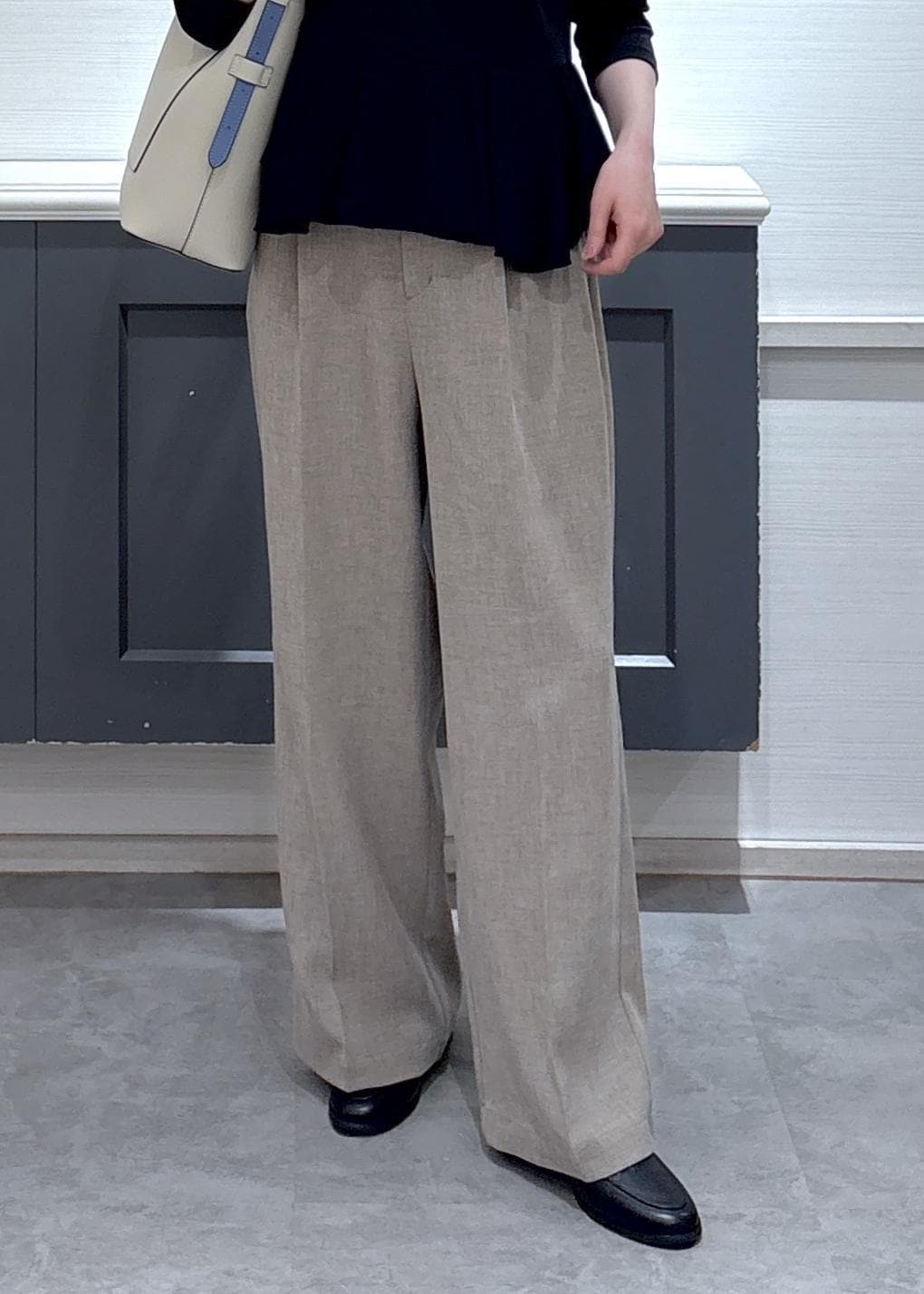 サラッとした素材感で夏でも涼しく履けそうでした◎
