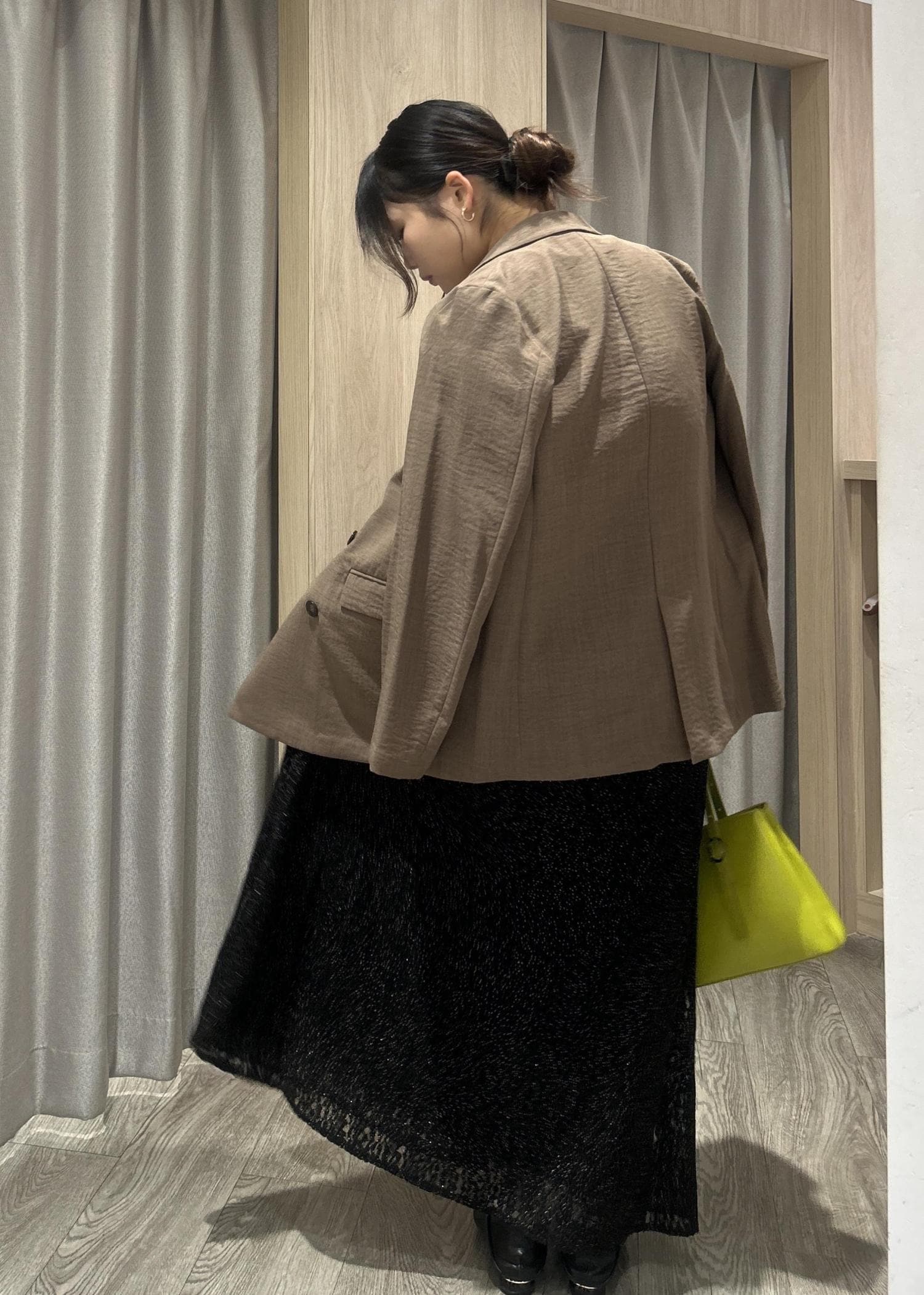 ジャケットはブラウンを合わせて重すぎない印象に✨