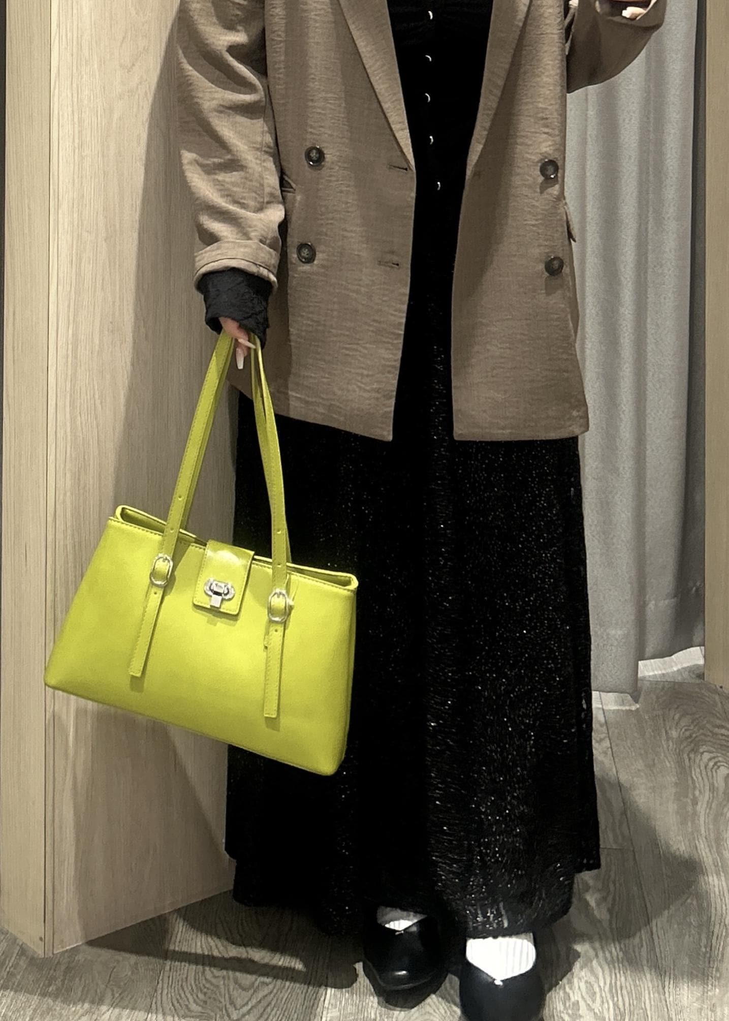 なんといっても差し色のグリーンのバッグがとっても気に入っています♡