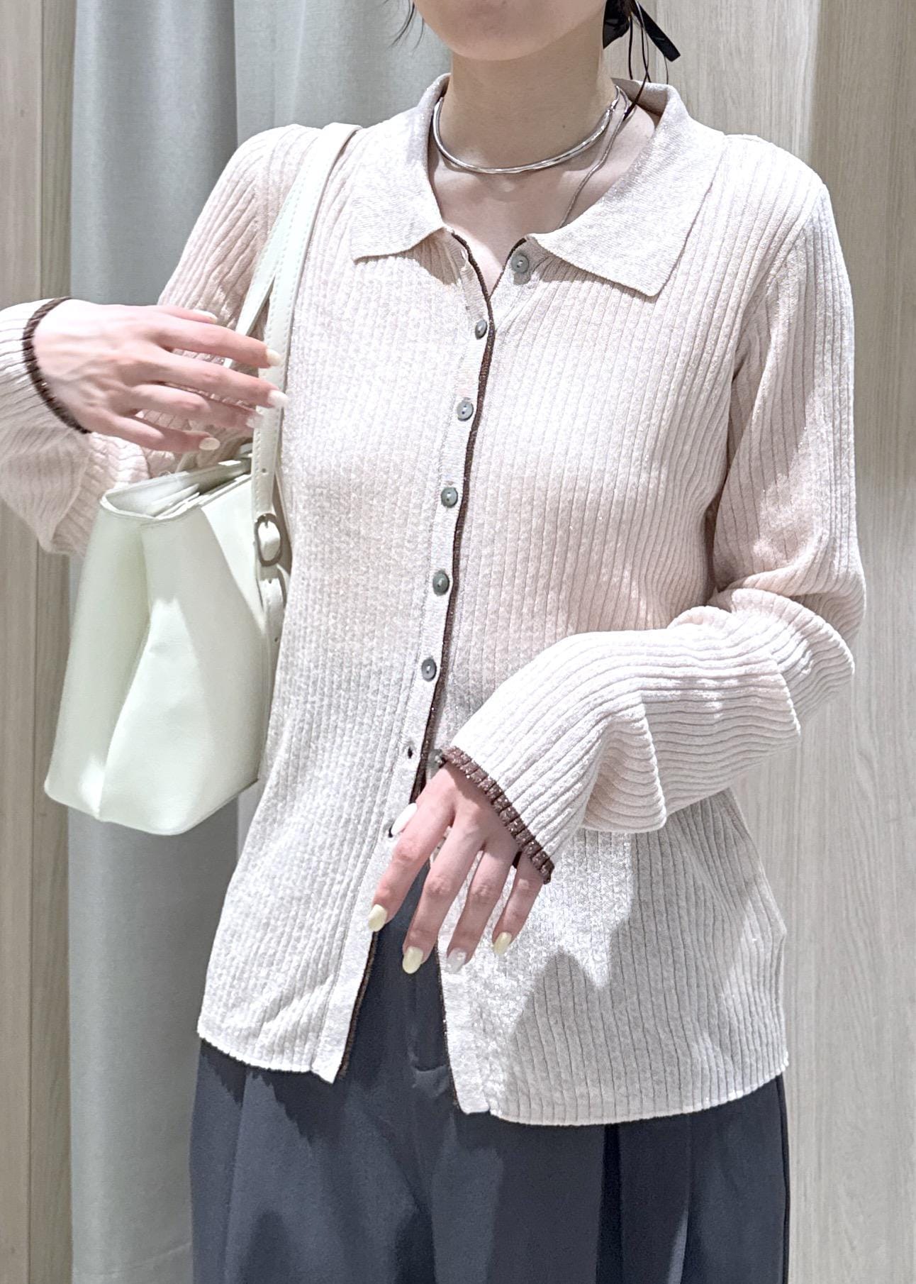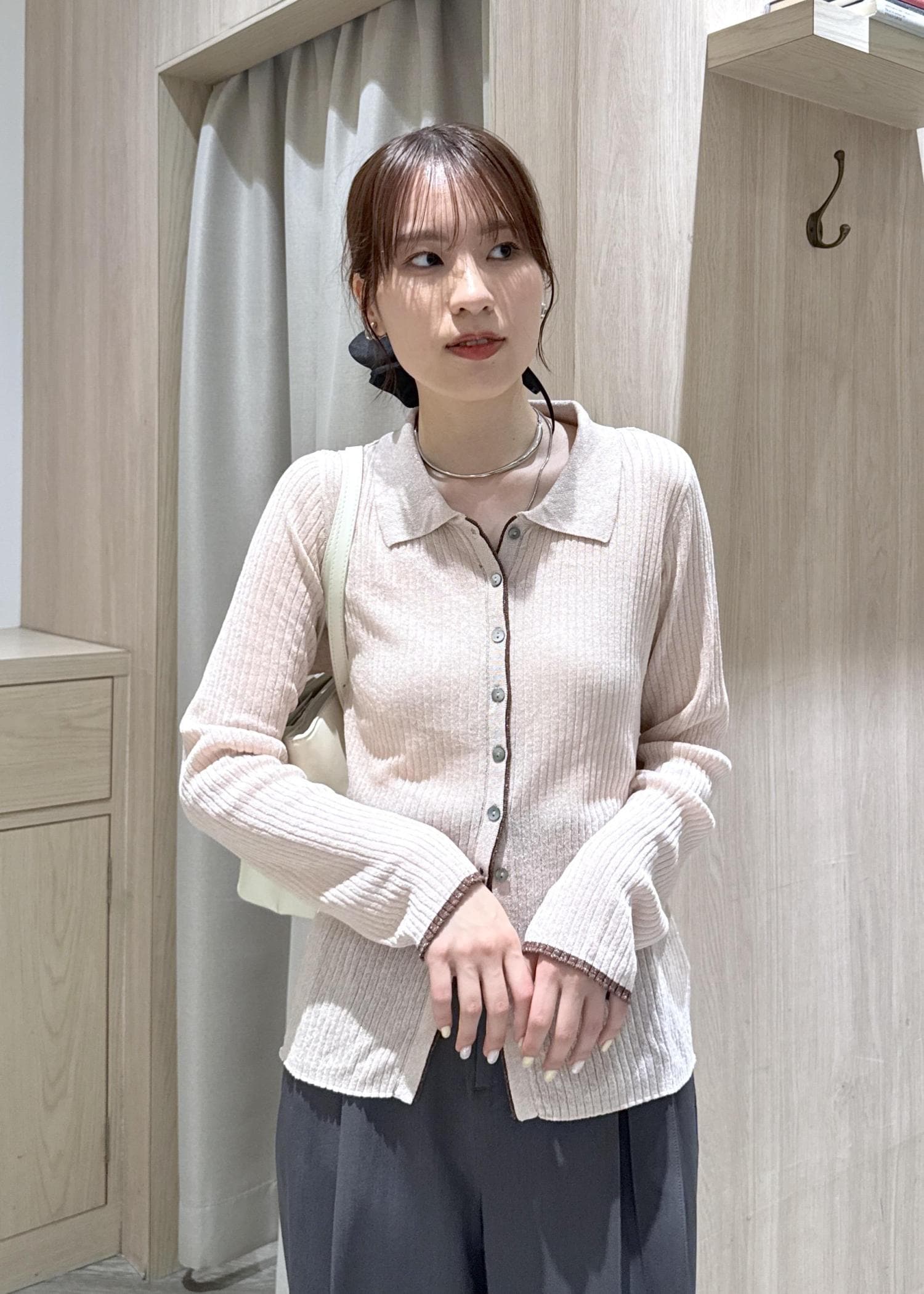 VISポロ襟配色シアーリブカーディガン/イージーケアピンク / F¥6,589レビュー身長157cm / Fサイズ
