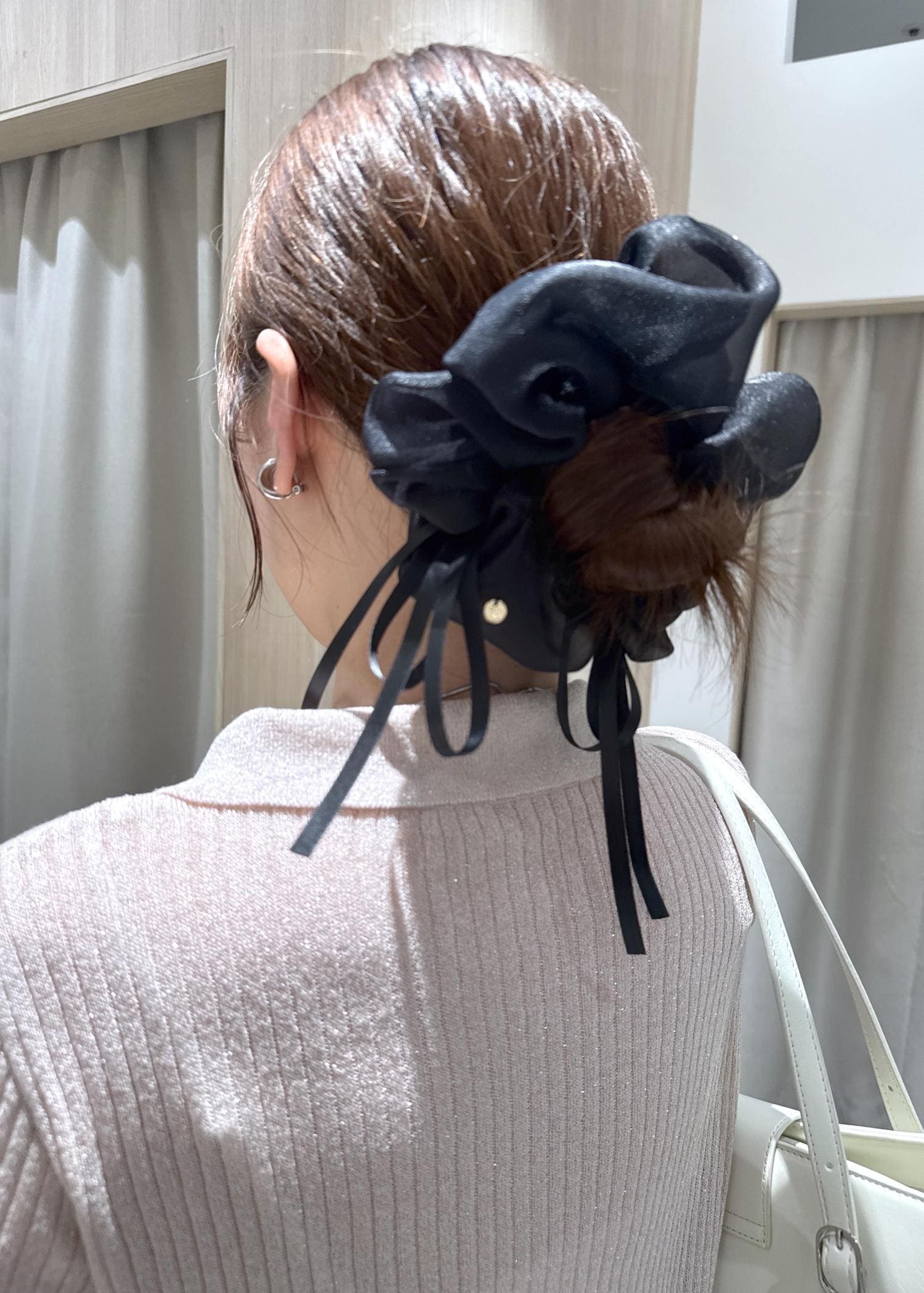 VISシフォンリボンシュシュブラック / F¥2,959レビューシフォン素材がコーディネートを春っぽくしてくれます!リボンも付いているため、ヘアスタイルを華やかに甘さもプラスしてくれます!!