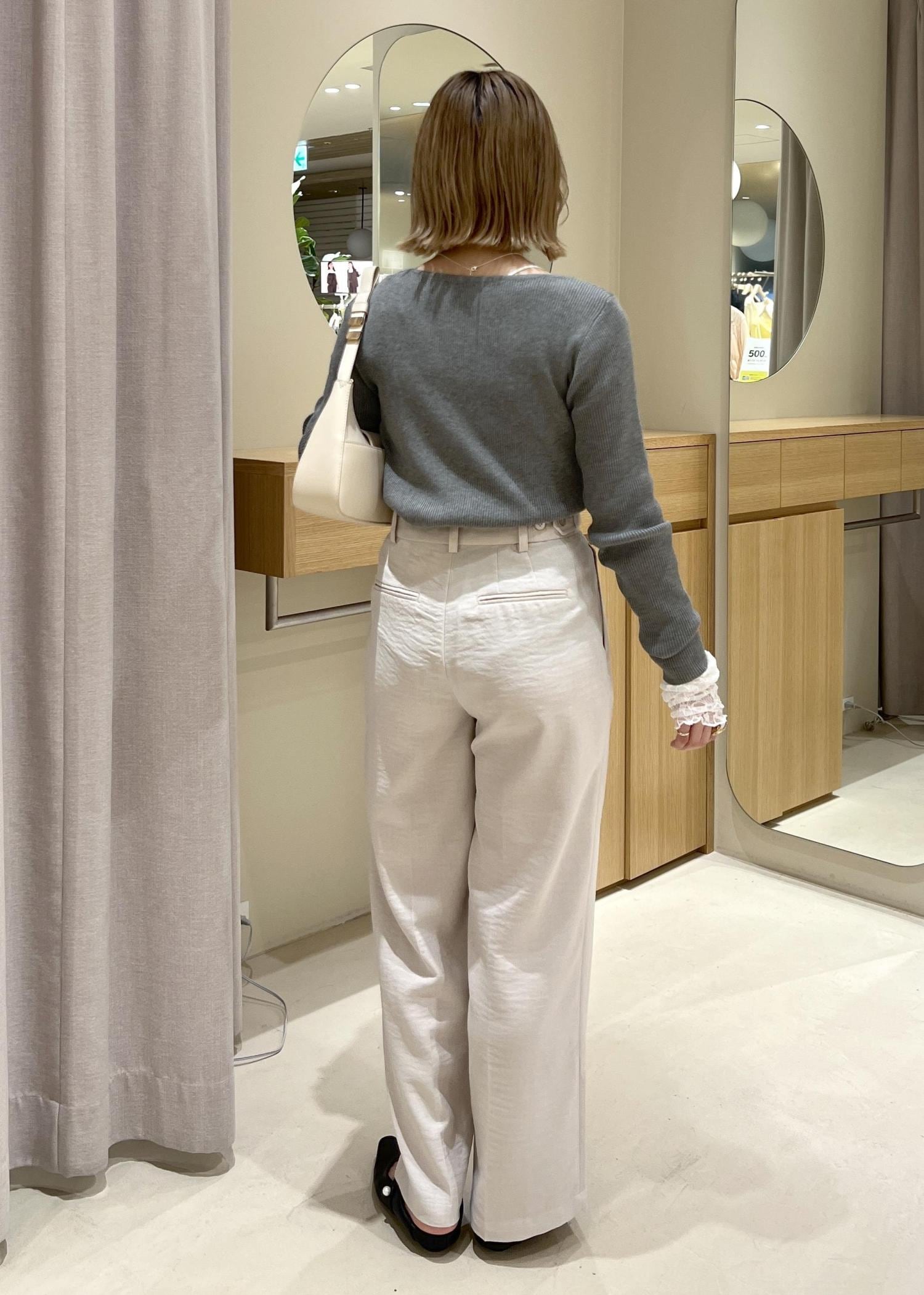 ウエスト:緩め(ボタン調整でちょうどいい◎)