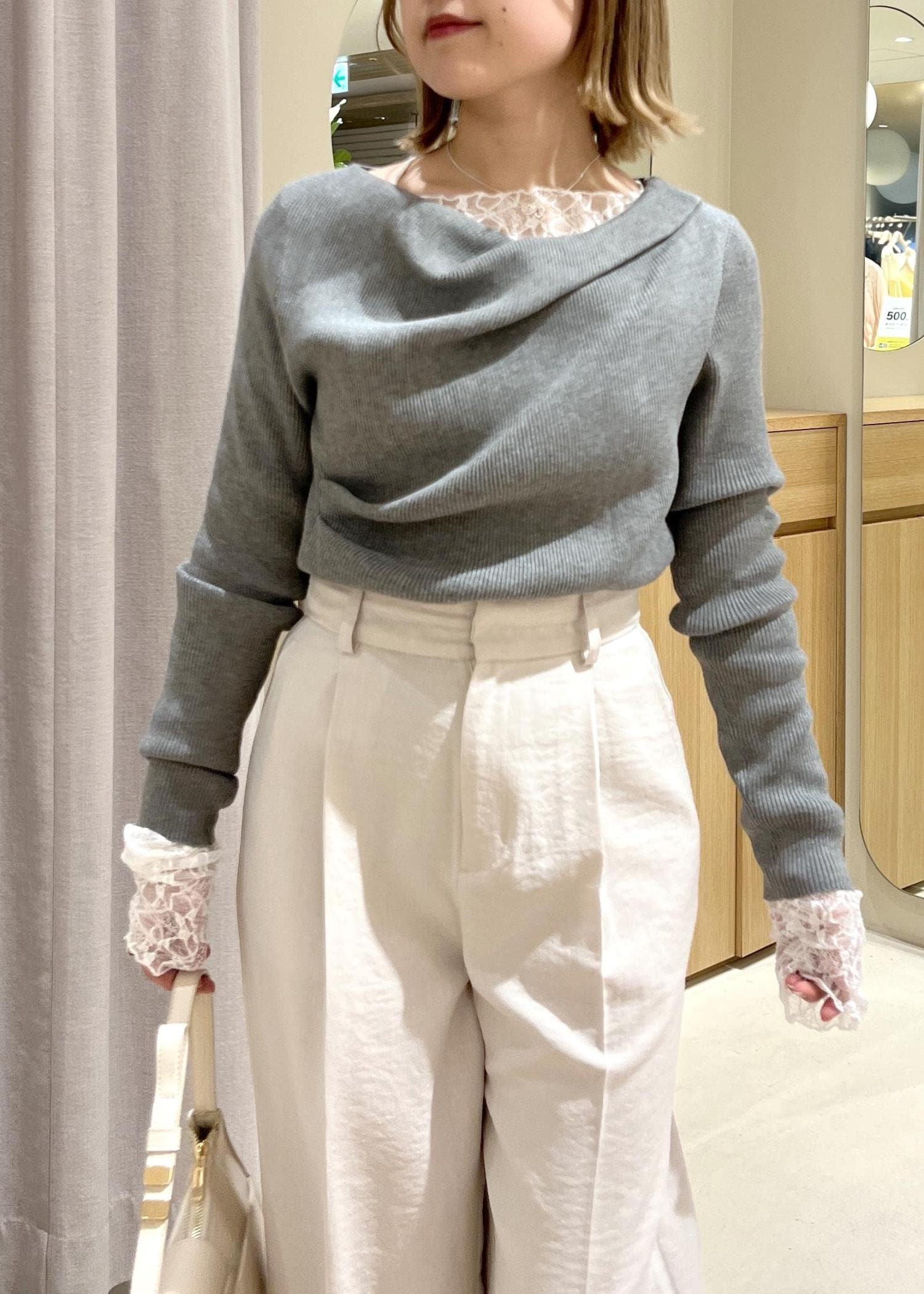 ドレープニットとレースインナーを合わせて、