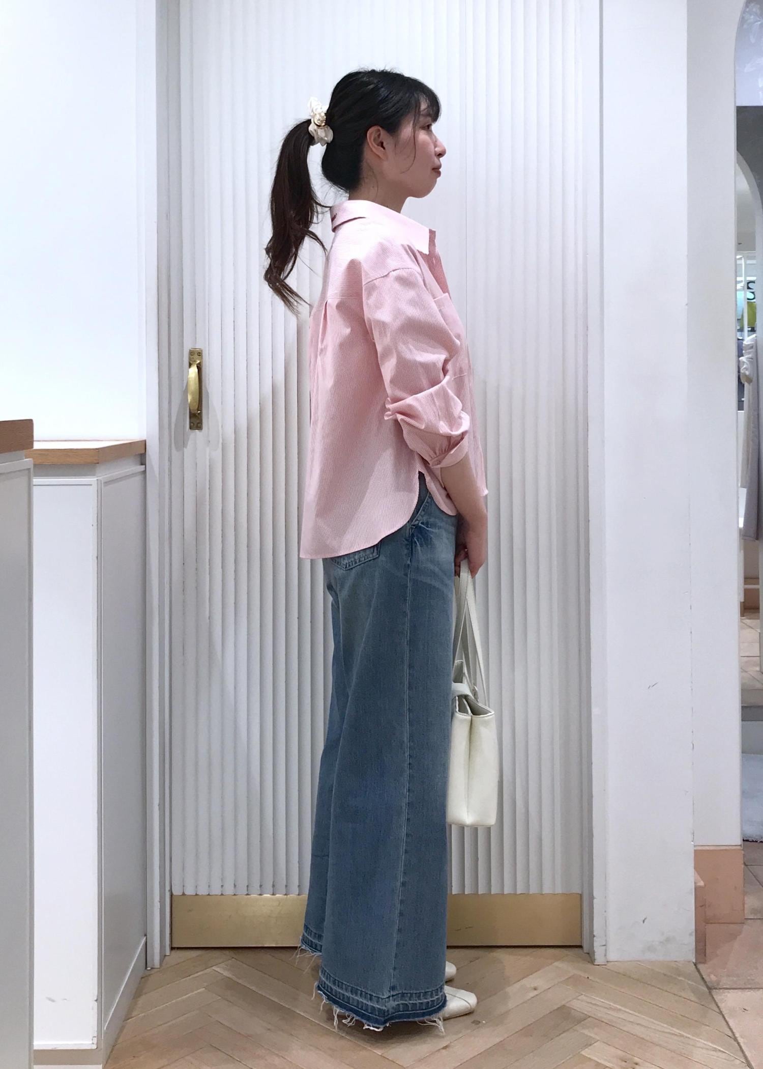 ストライプが可愛い【SWIMMER】とのコラボシャツとデニムを合わせたカジュアルコーデです!