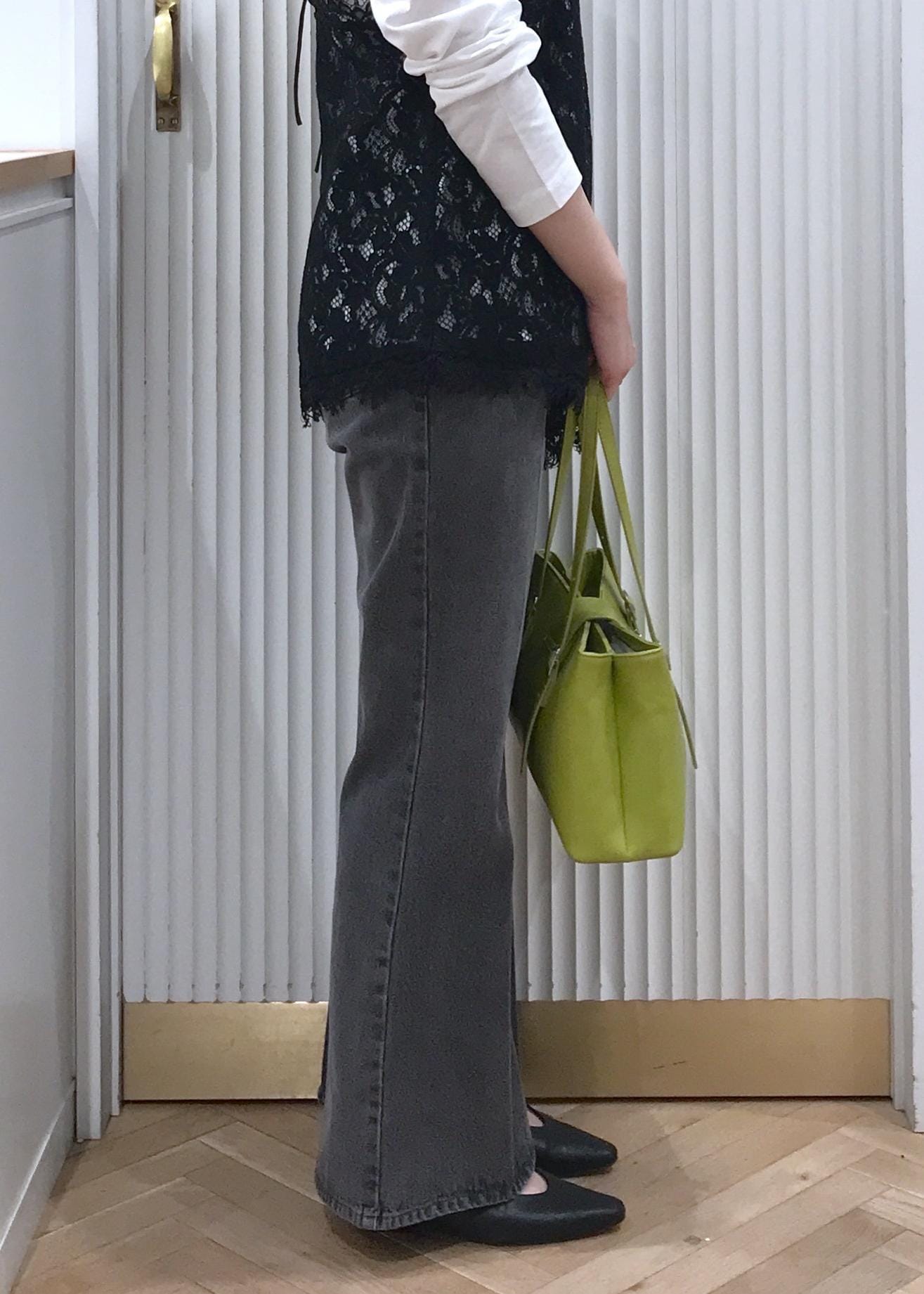 ふくらはぎが気になるタイプですが、フレアなので膝から下はスッキリ見えます。 -
