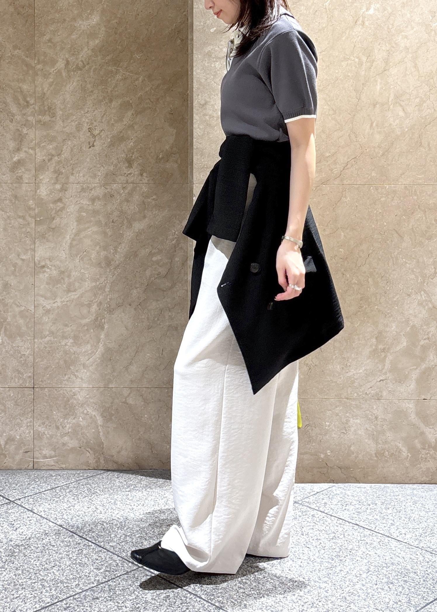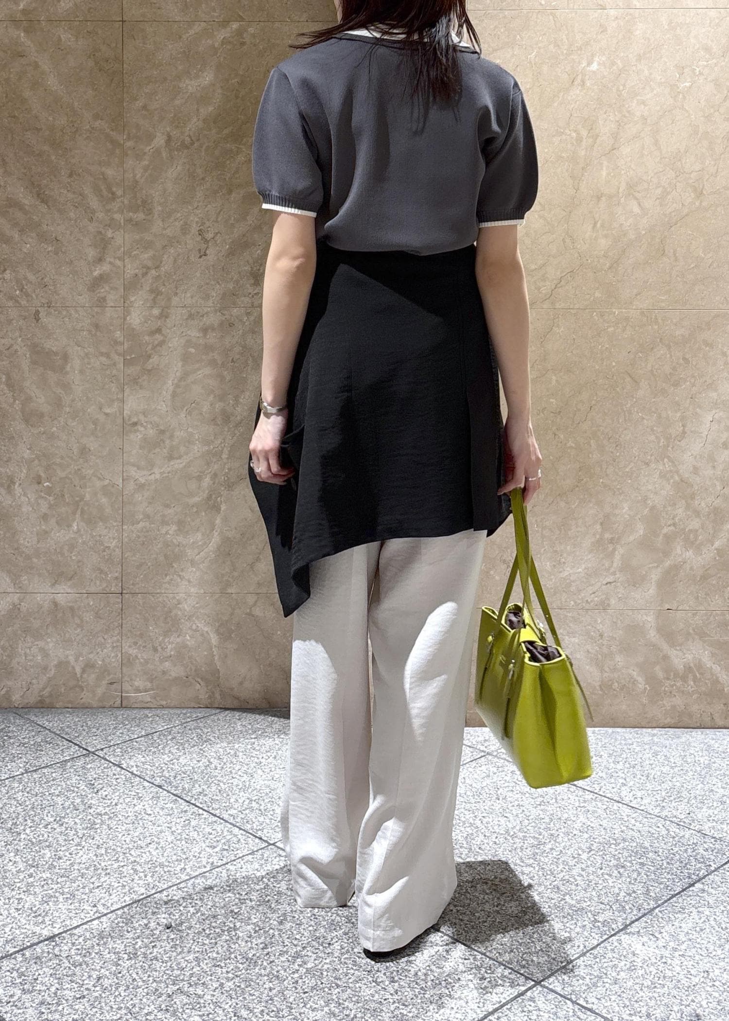 着丈はしっかりハイウエストで履くと踵が隠れる長さでフラットシューズでも下につかないくらいの長さです。 -