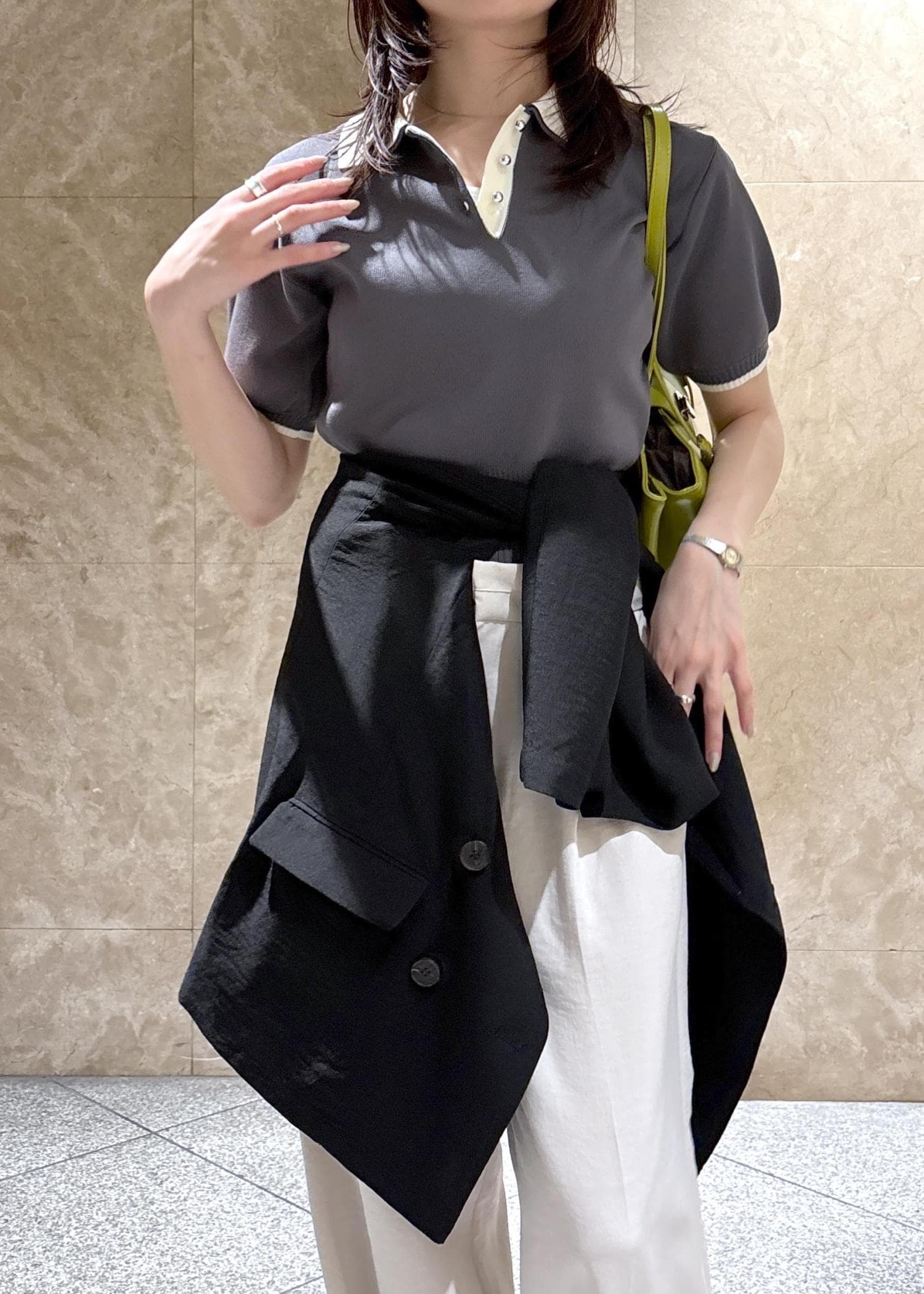 NEW!VISダブルカラー半袖ポロニットトップス/イージーケア・WEB限定カラーグレー / F¥5,489レビュー肌あたりの柔らかいもちっとしたニット素材。