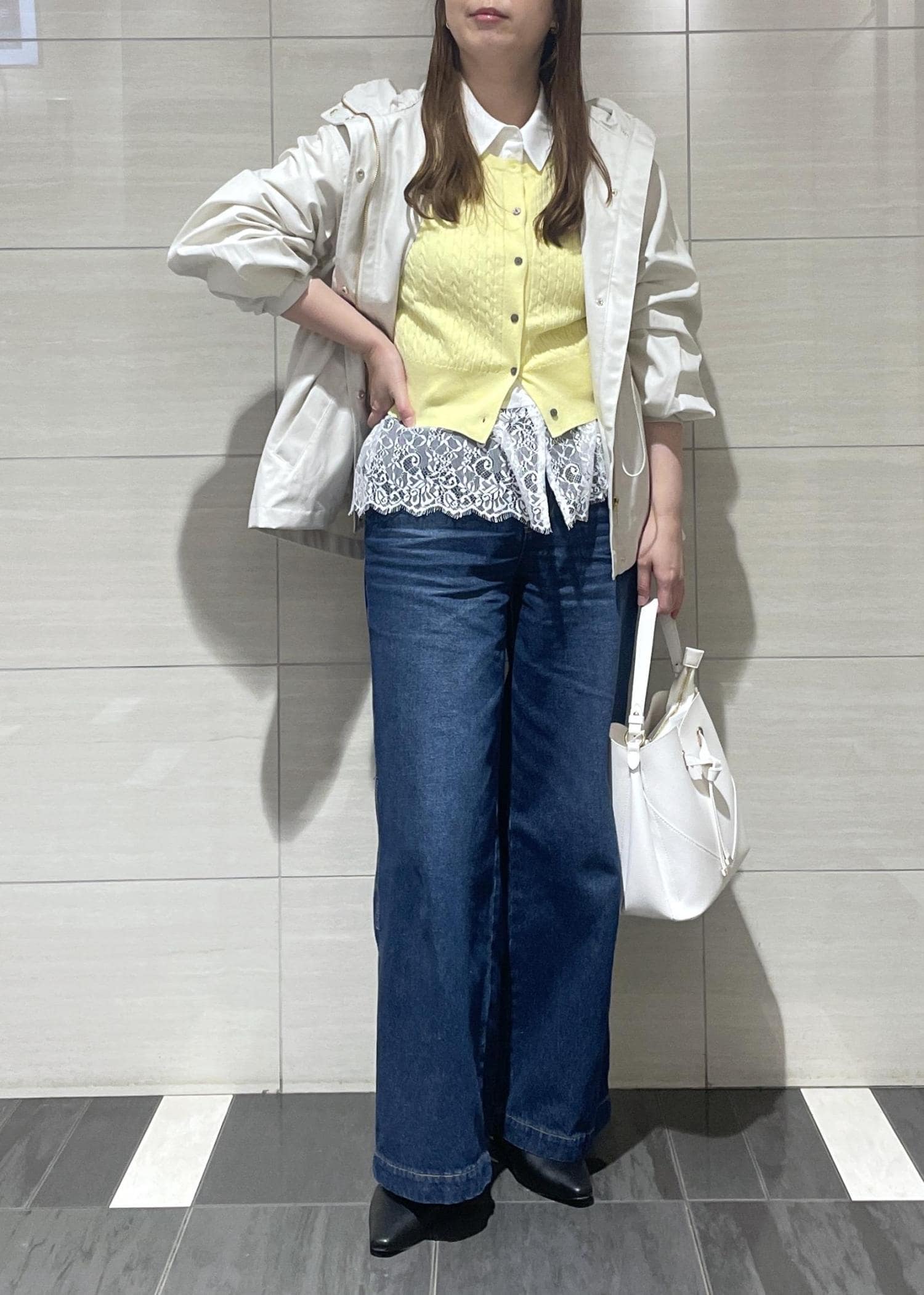 全体的にゆとりがあるので肌寒い時は少し厚手のニットやスウェットも着れます◎ -