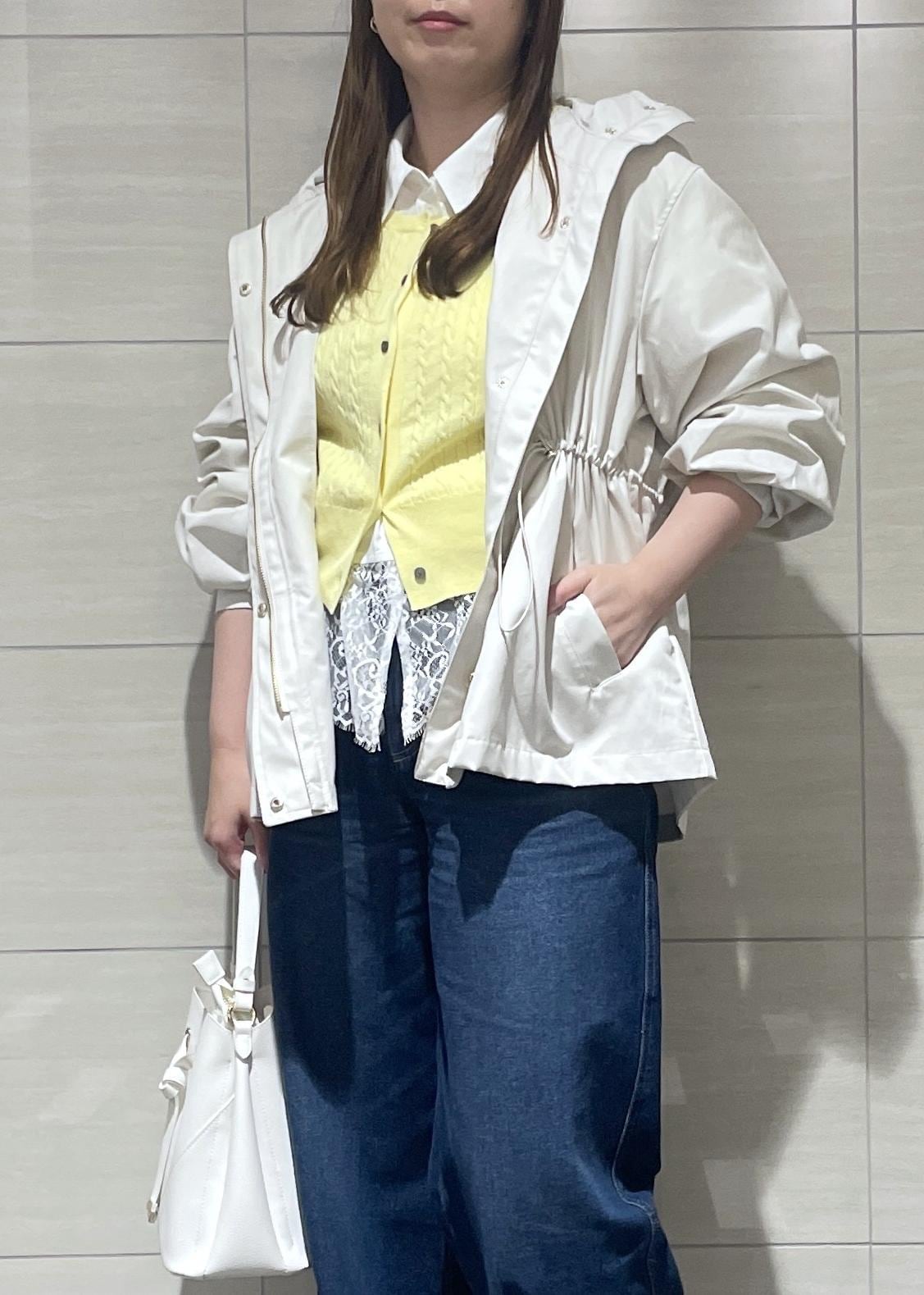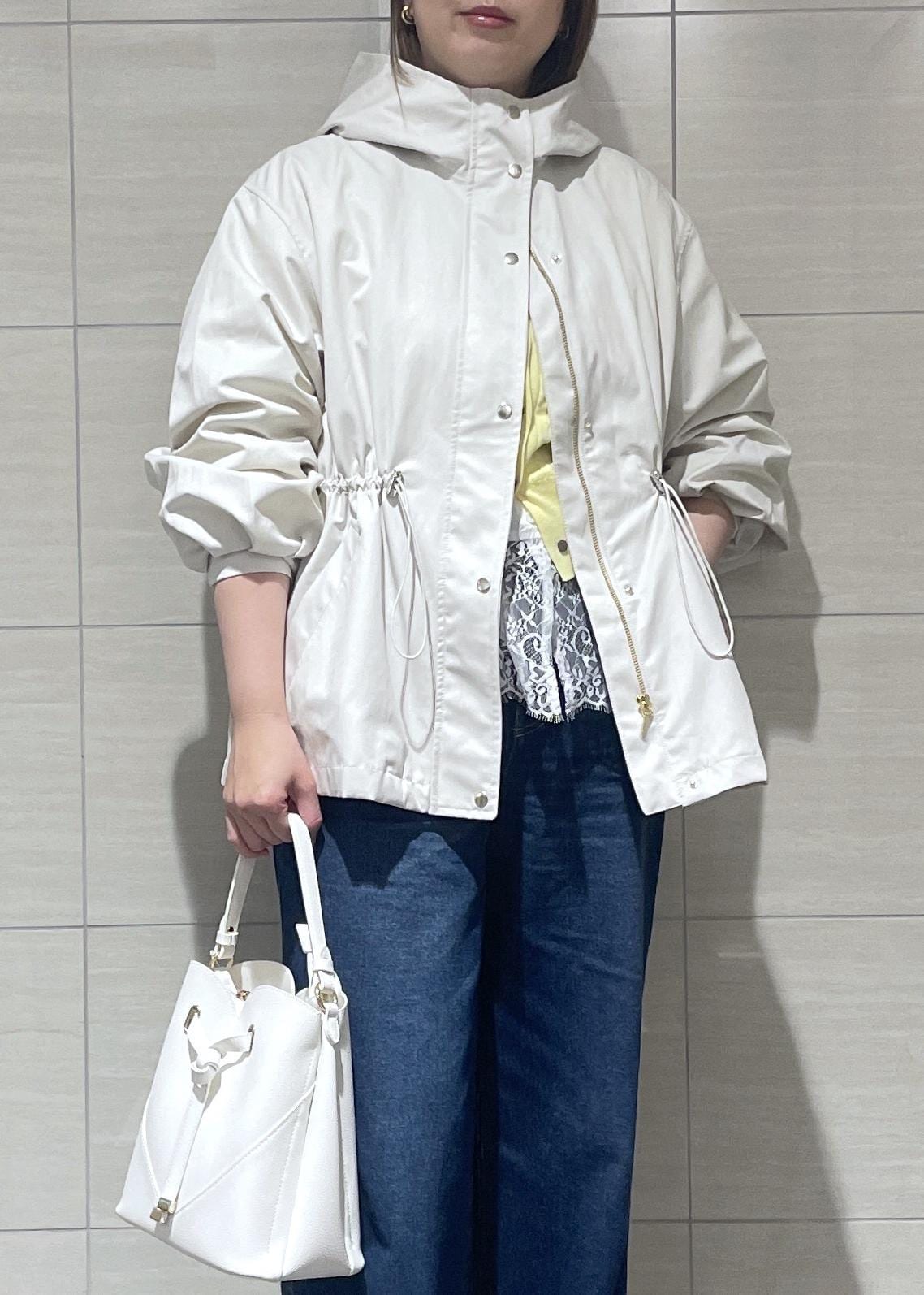 VISウエストマークナイロンジャケット/スプリングマウンテンパーカーオフホワイト / F¥8,899レビュー163cmでヒップがすっぽり隠れる丈感です。