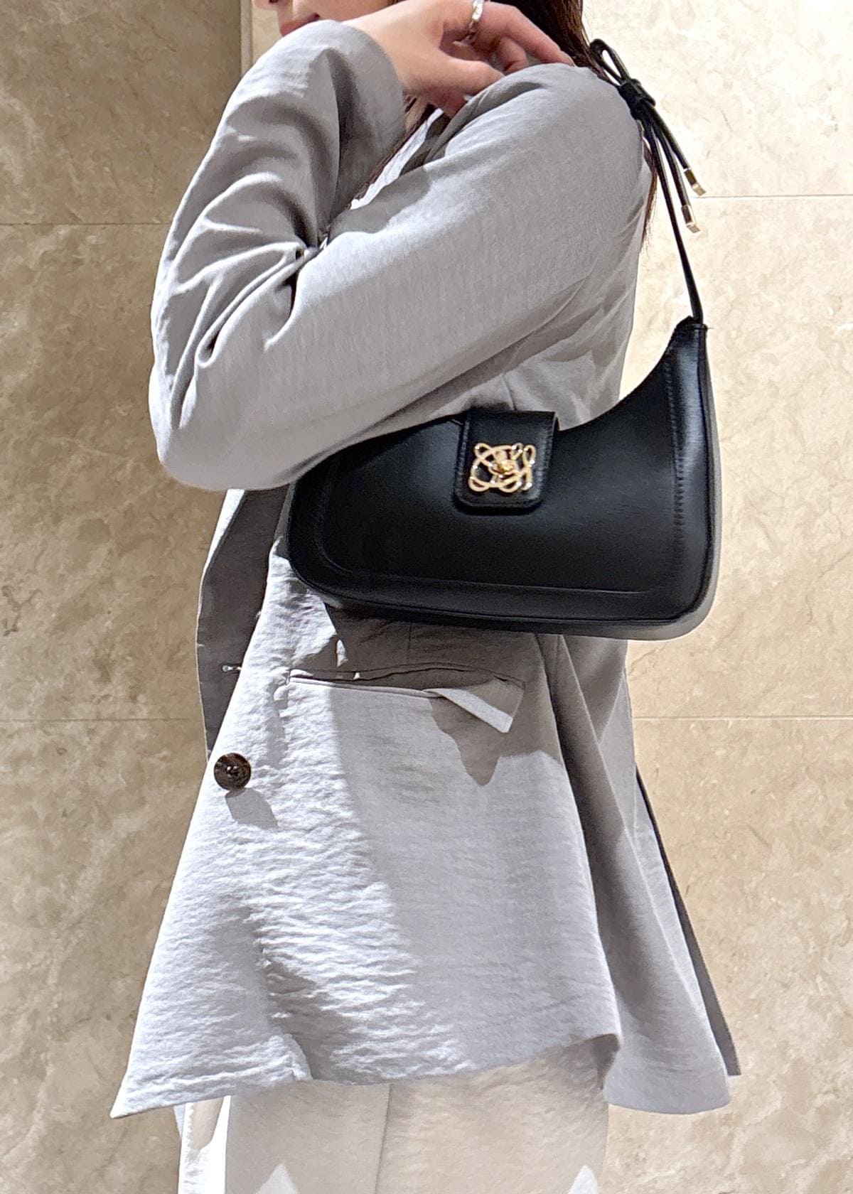 VIS【180℃美人見え】ハンドルリボンワンショルダーバッグ/新色追加ブラック / F¥5,929レビュー長財布なども入るサイズ感!