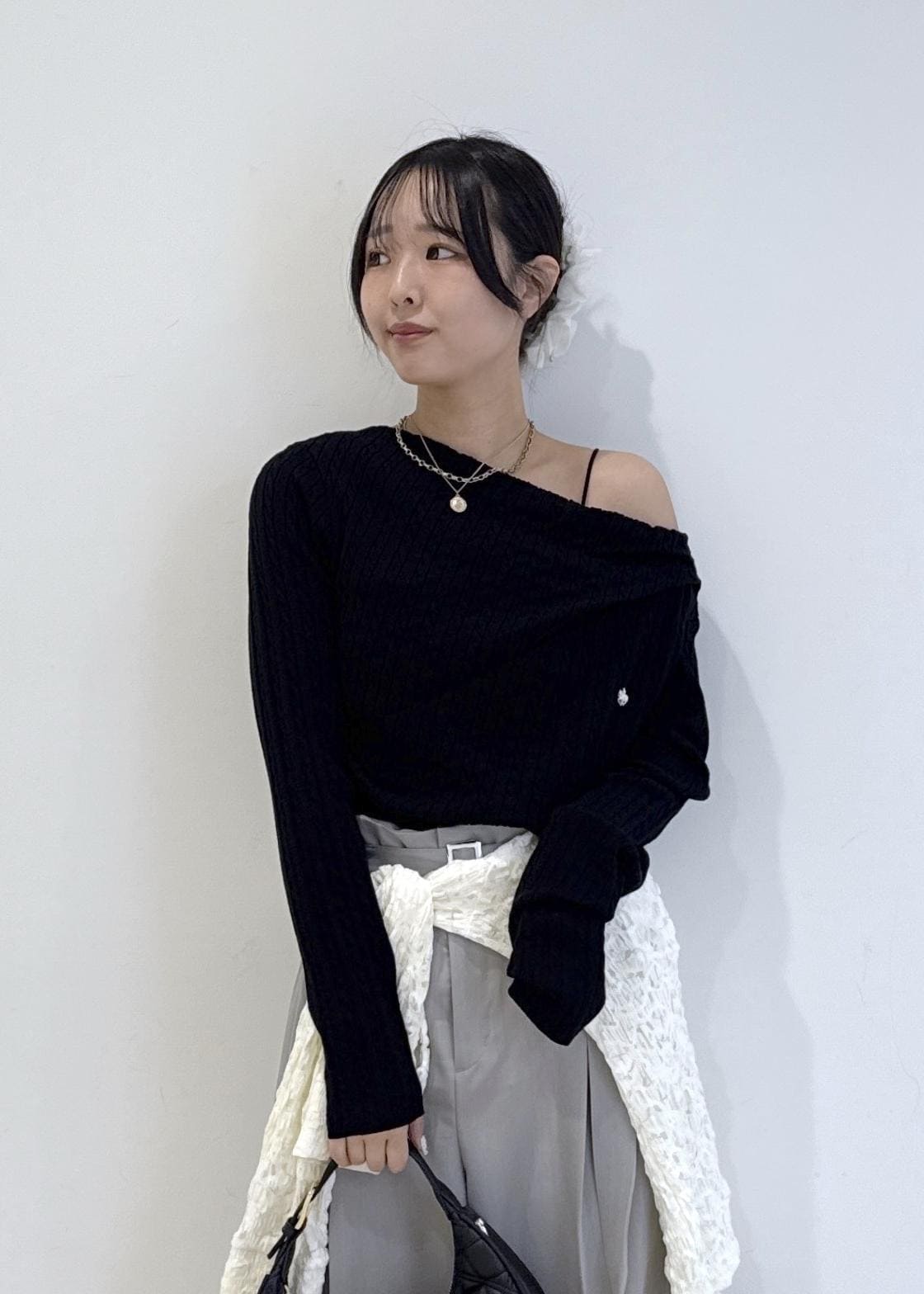 ウェーブさんは片方だけオフショルにすると