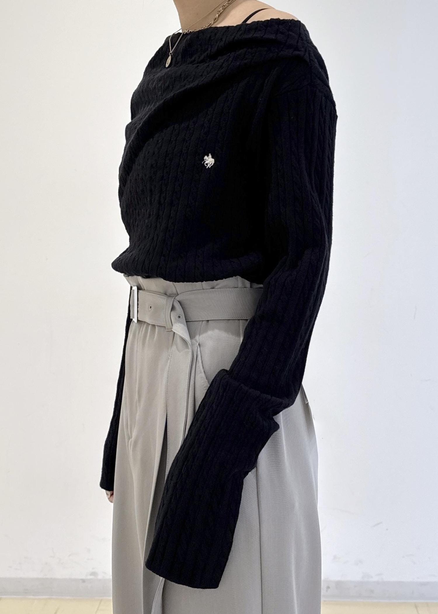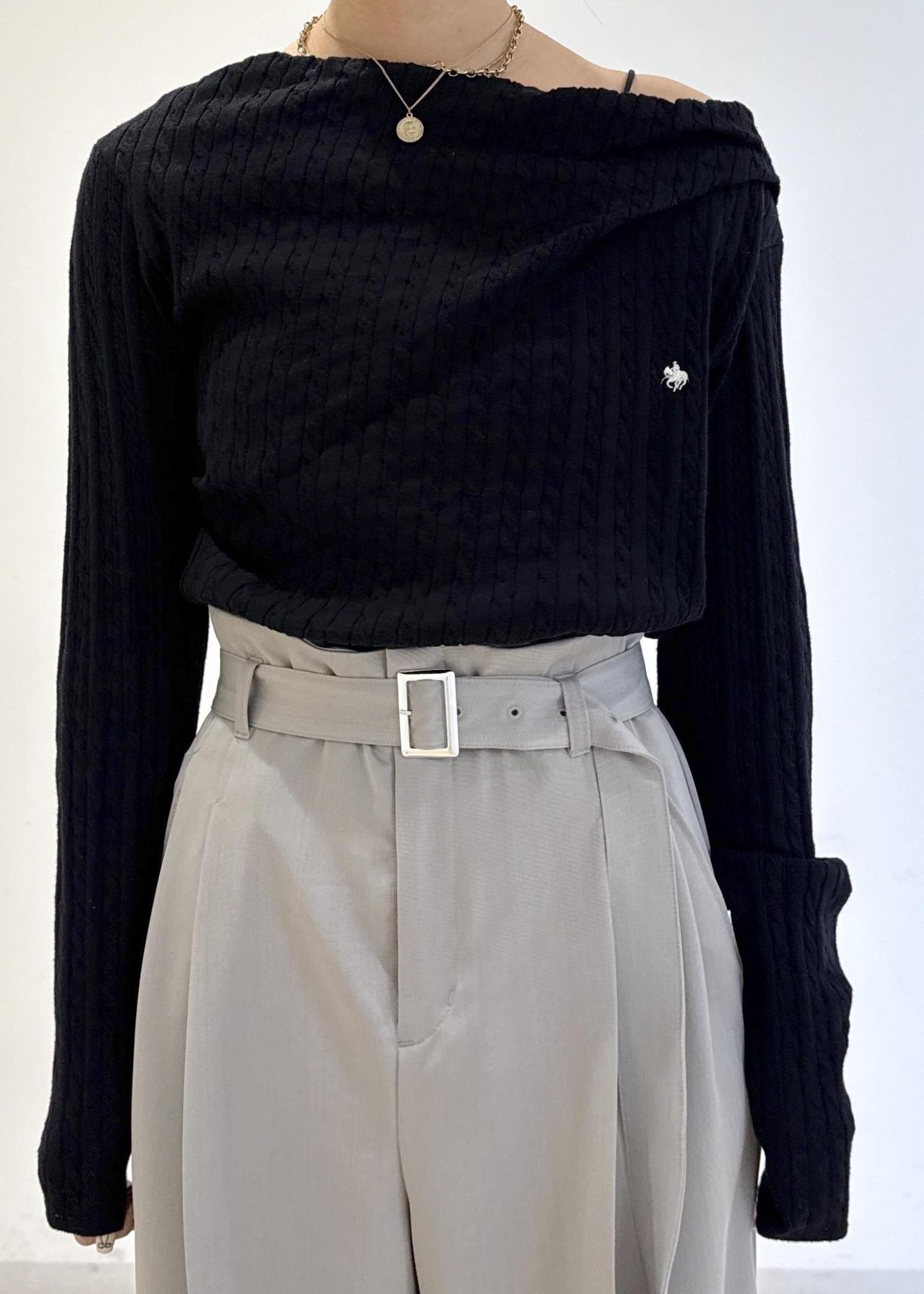 VIS【POLO BCS】VIS別注ケーブルドレープトップスブラック / F¥6,930レビュー首元が結構開くかな?と思いましたが、思った以上に開きすぎずに安心して着用出来ました。生地は分厚すぎずにサラッとしていて、春1枚で着用できます。片方だけオフショルにして着ると、鎖骨が綺麗に見せれて華奢な印象になります