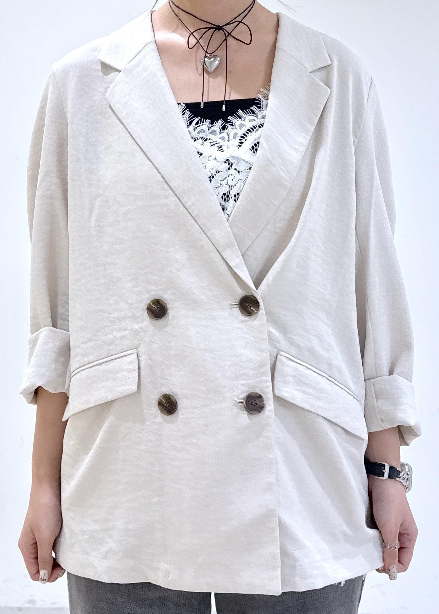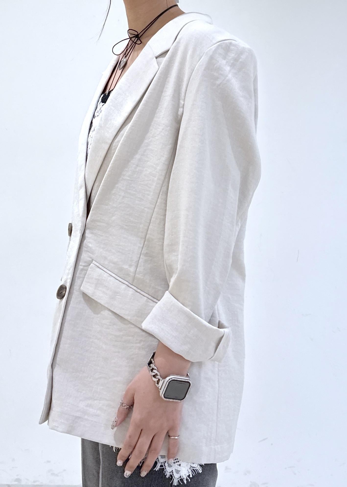 裏地がなしでサラッとしてるので、夏でも羽織やすいジャケットです -