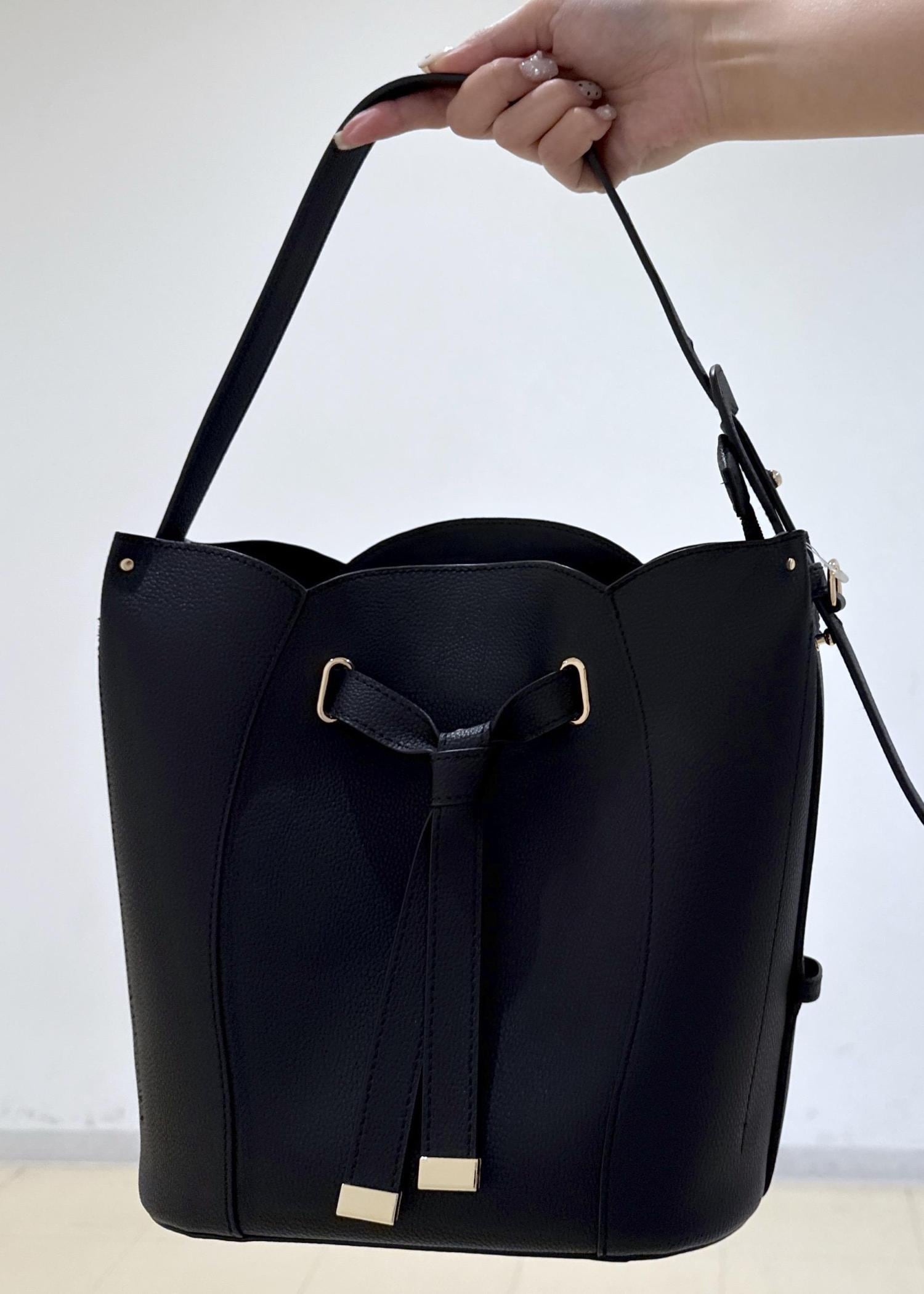 VISフラワーカットショルダーバッグ/2WAYブラック / F¥7,909レビューペットボトルを入れてもしっかり蓋が閉めれるくらい大容量で嬉しいです。斜め掛けにもできるので、用途に合わせて使えます。ショルダーに変える際の穴が想像以上に小さくてかなり苦戦するので、新しいものを購入した方は家で少し穴を広げてから調節するのがいいと思います。