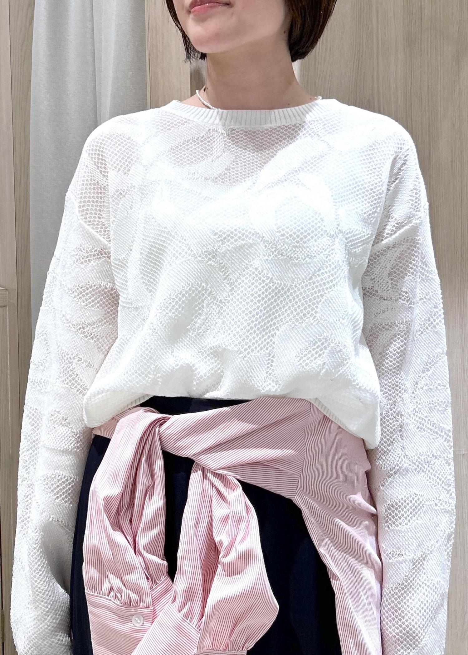 VISメッシュジャカードニットプルオーバー/イージーケアオフホワイト / F¥5,489レビューお腹が隠れる長さのニットです。