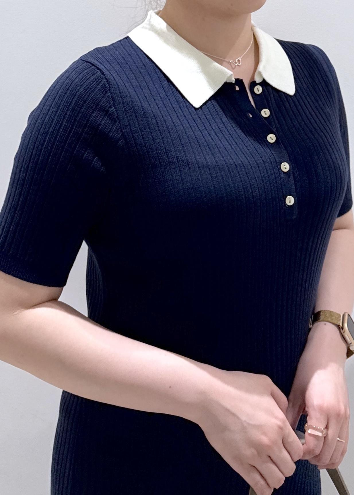 VISポロ襟ニットワンピースネイビー / F¥7,689レビュー去年も人気だった襟付きポロワンピース♪生地感が薄すぎず分厚すぎず夏でも暑くなさそうなサラッとしたニット素材です。骨格ストレートなのですが、そこまで身体のラインがでずに下にストレートに落ち感があったので着痩せ効果がアリ◎また下着も透けにくいです。身長157cm/Mサイズ着用で足首辺りぐらいのロング丈でした。