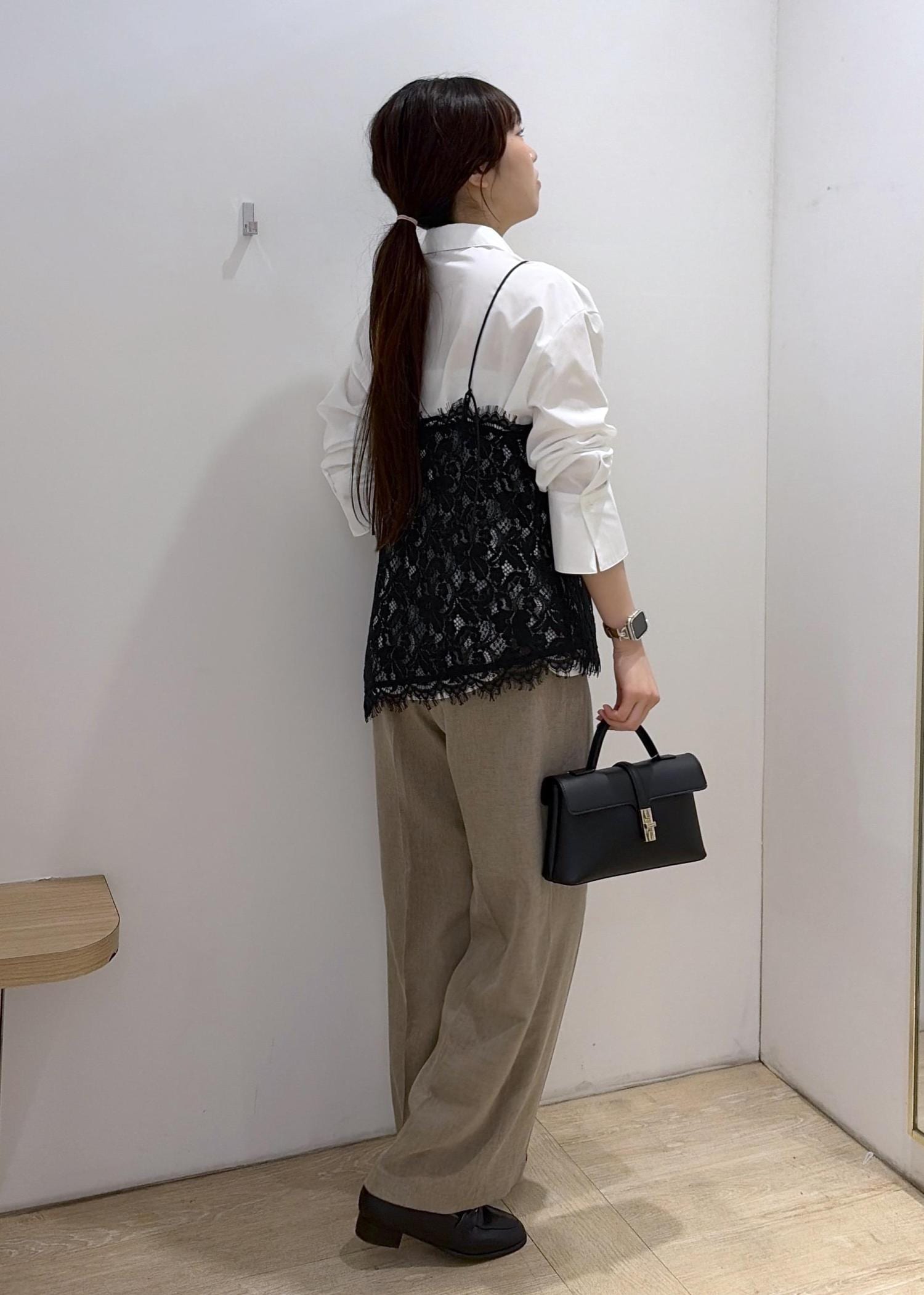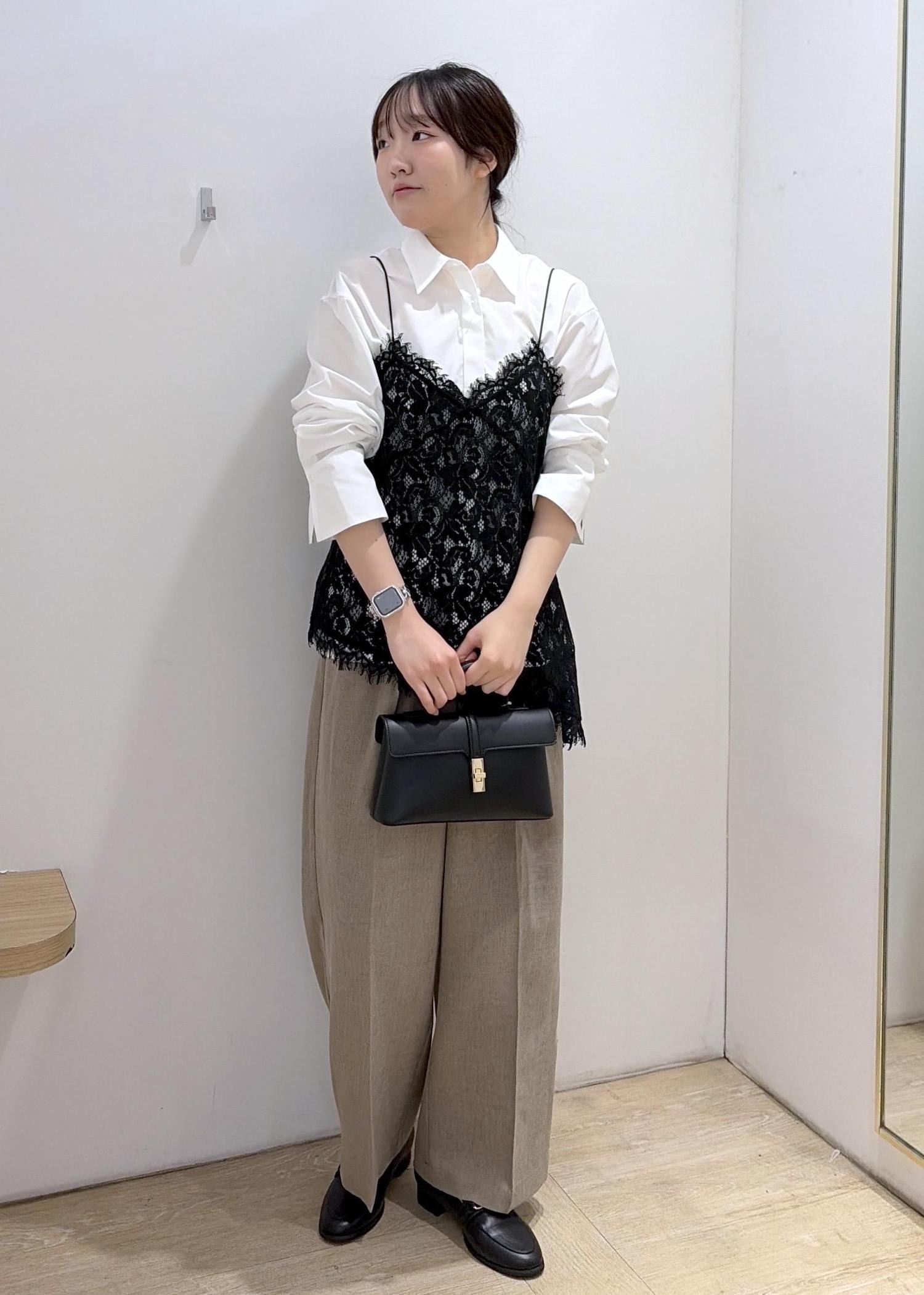 アシンメトリーデザインになっていてレイヤードしてきても可愛いですし、インナーと合わせて1枚できても◎